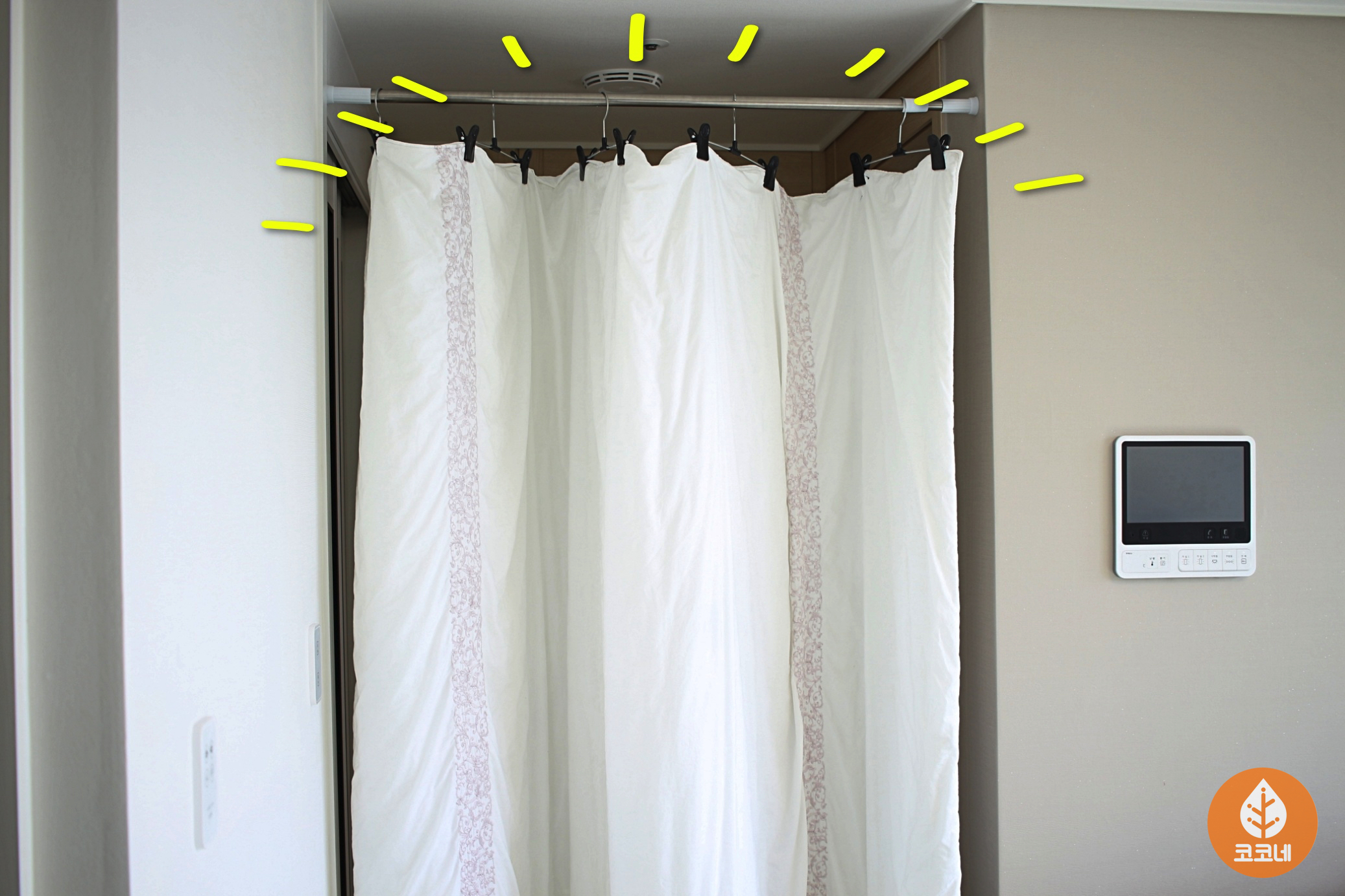 옆쪽 빈벽에 붙여서 압축봉 하나만 설치하면