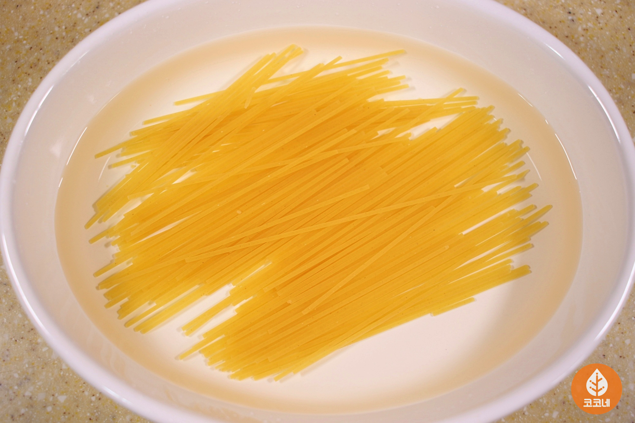 스파게티면이 완전히 잠기도록 물을 부어주세요.