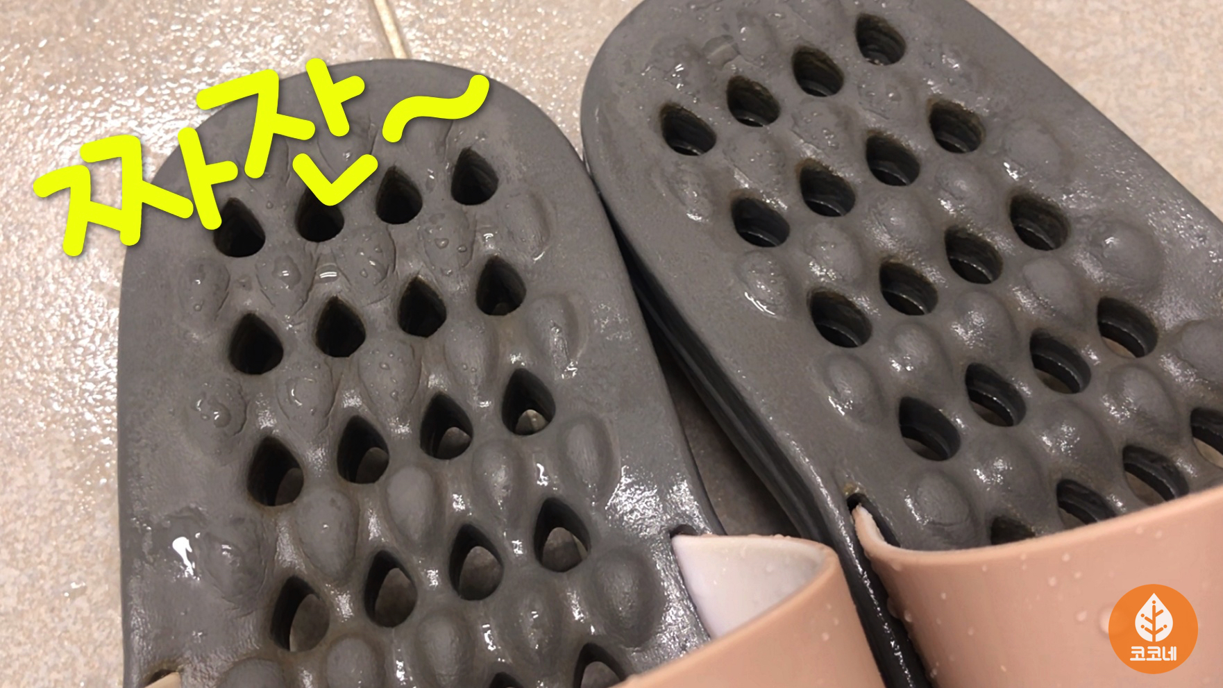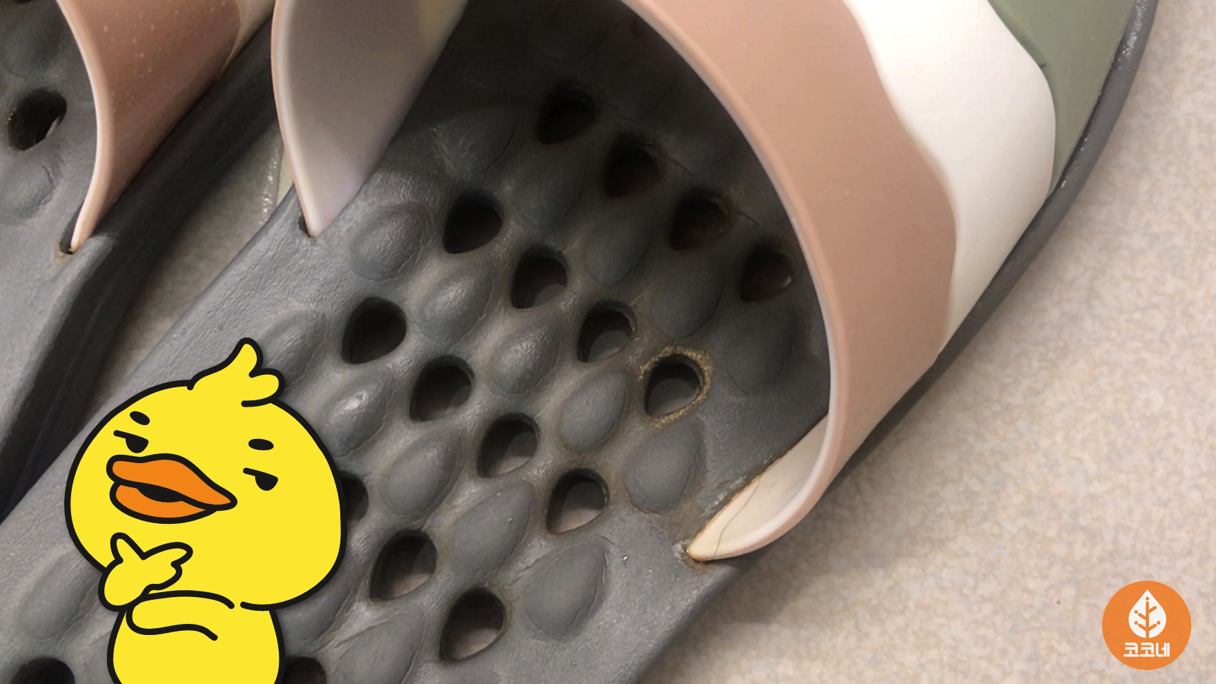 욕실화의 뽕뽕 뚫린 구멍 사이로