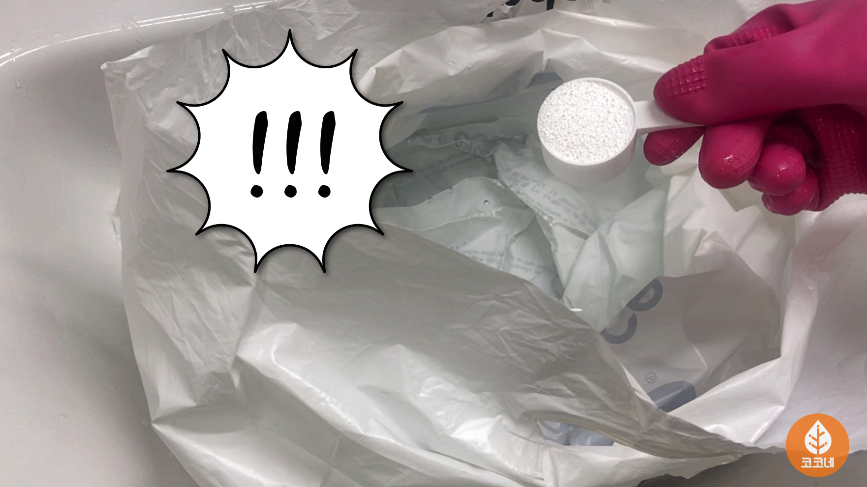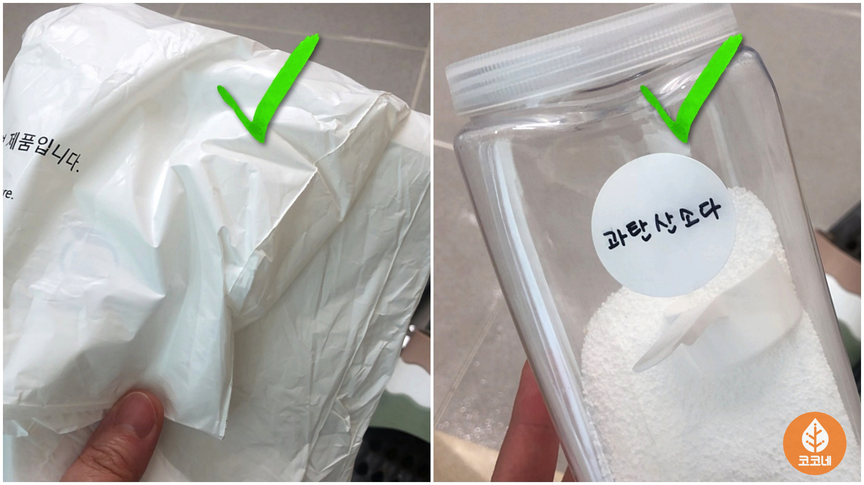 튼튼한 비닐봉지와 과탄산소다를 준비해 주시고요.