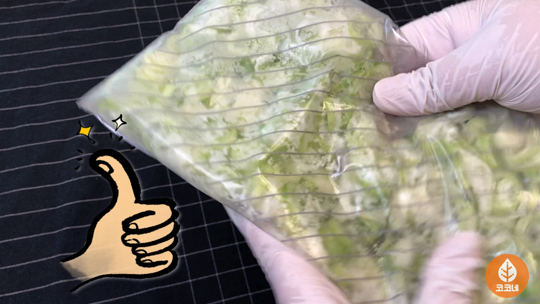 지퍼백 속 대파를 최대한 넓게 펼쳐주고