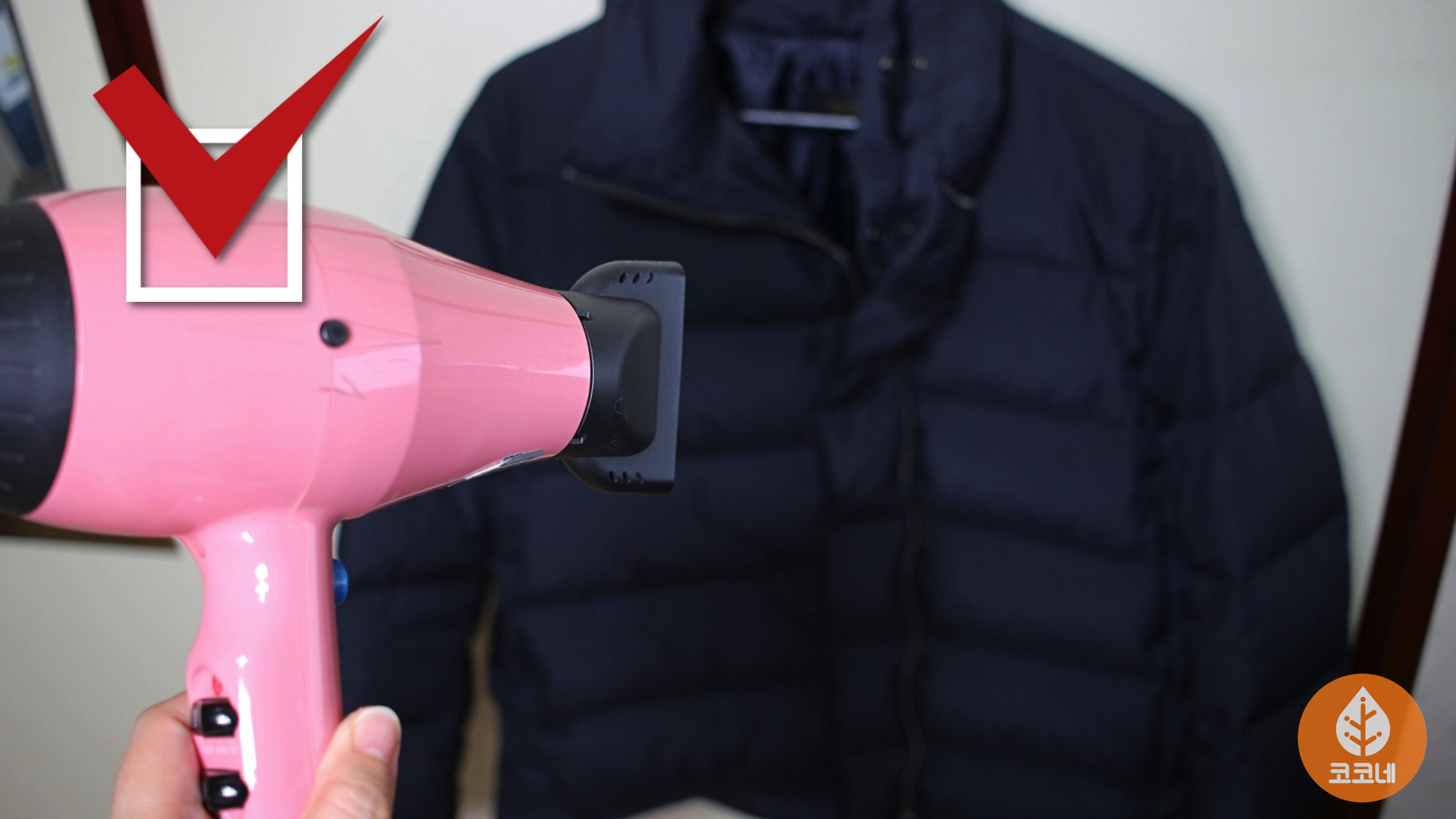 드라이기로 패딩에 직접 열을 가할 때는