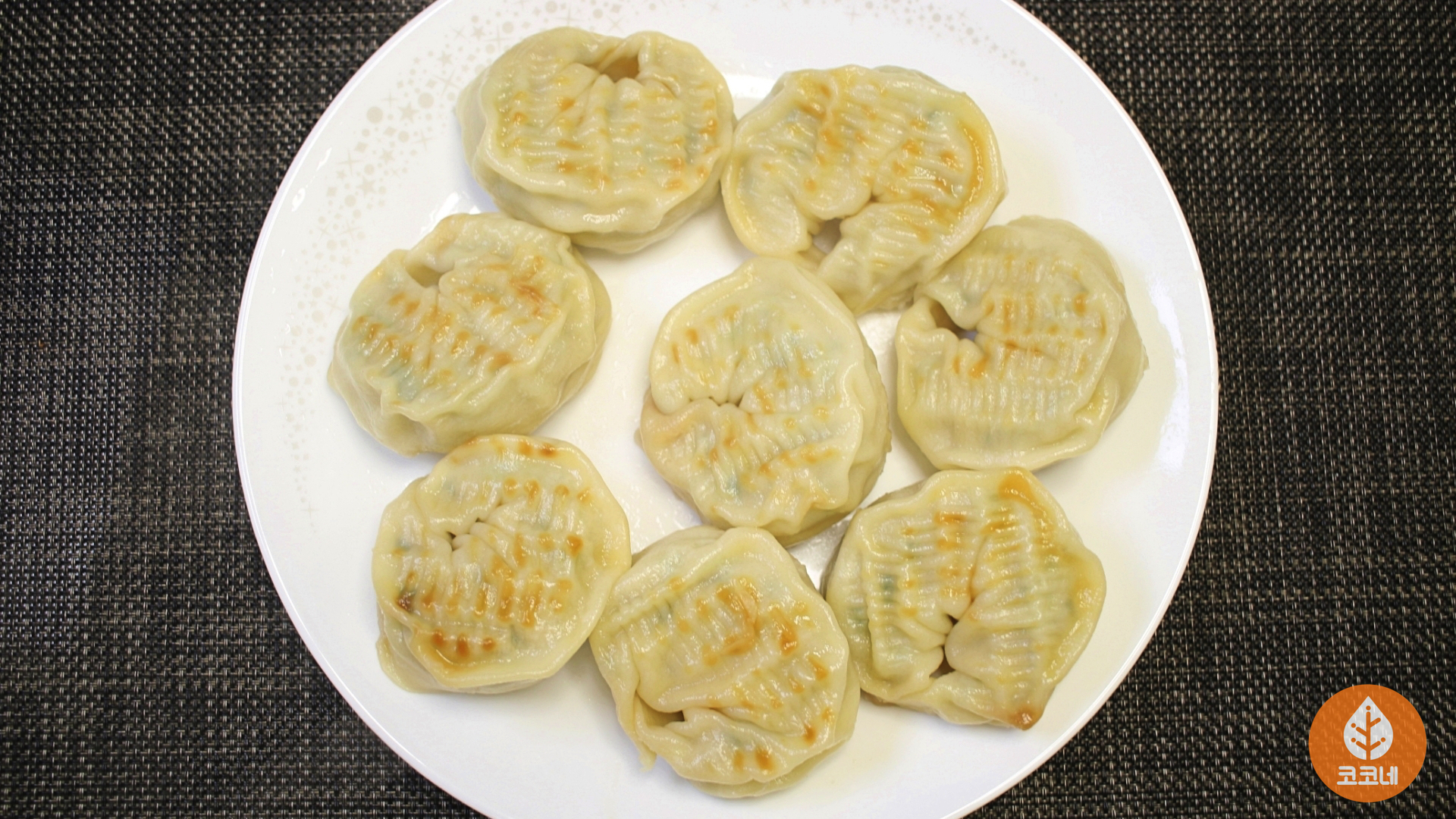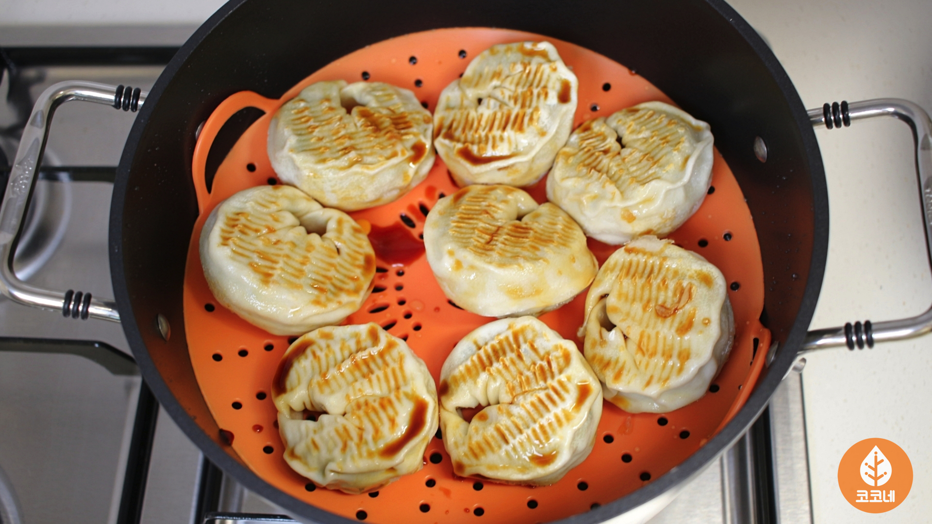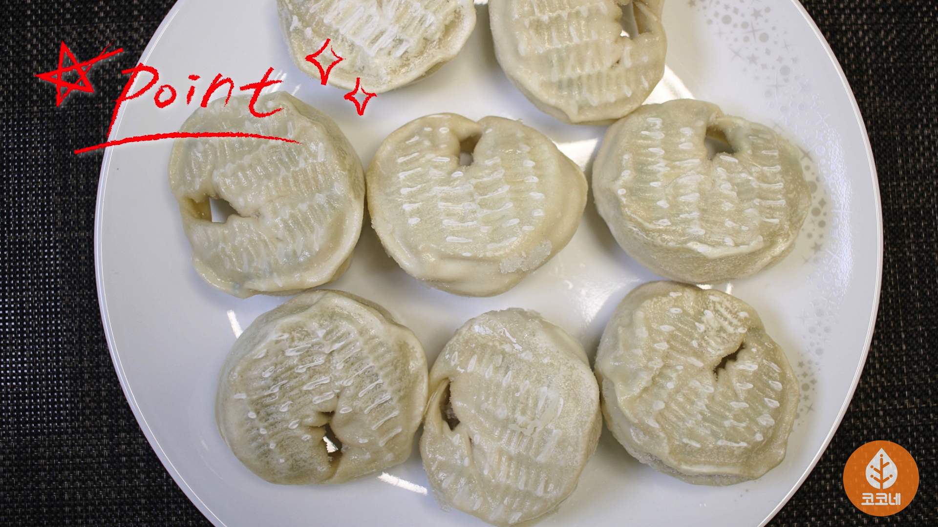 바닥이 보이도록 만두를 뒤집어서 올려주세요.
