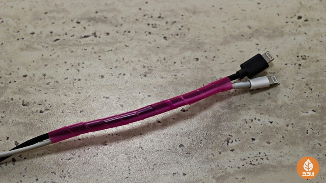 세로로 반을 갈라서 케이블에 씌워주세요.