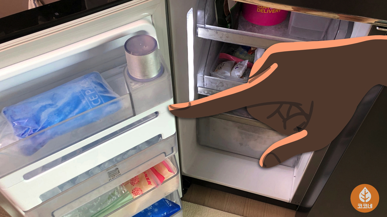 냉장실이 아니라 냉동실에 넣어야 해요!