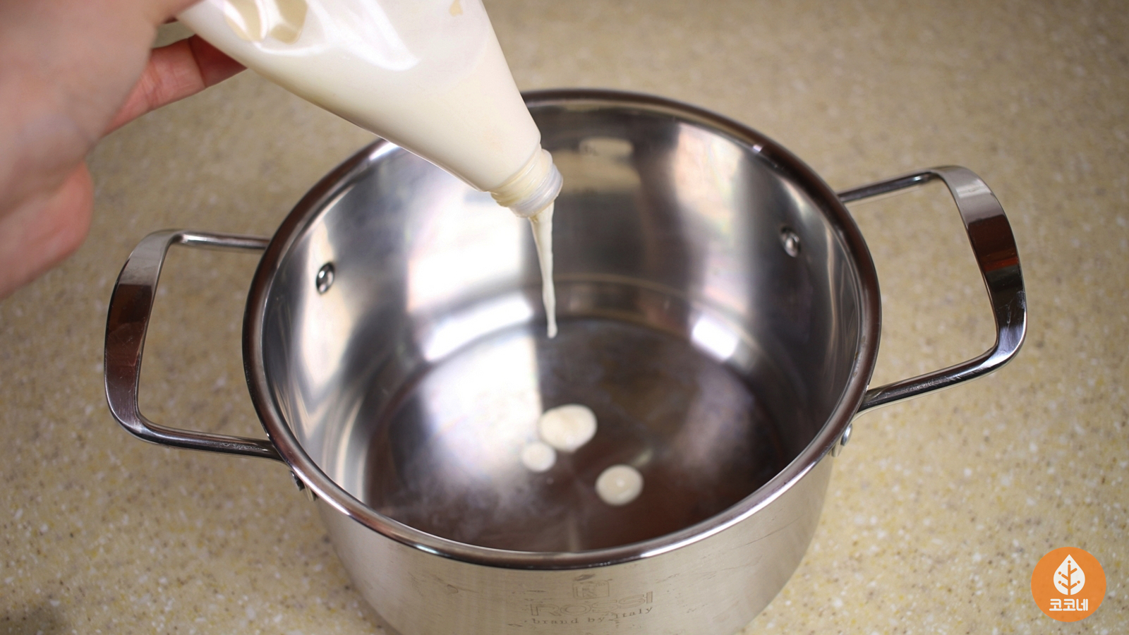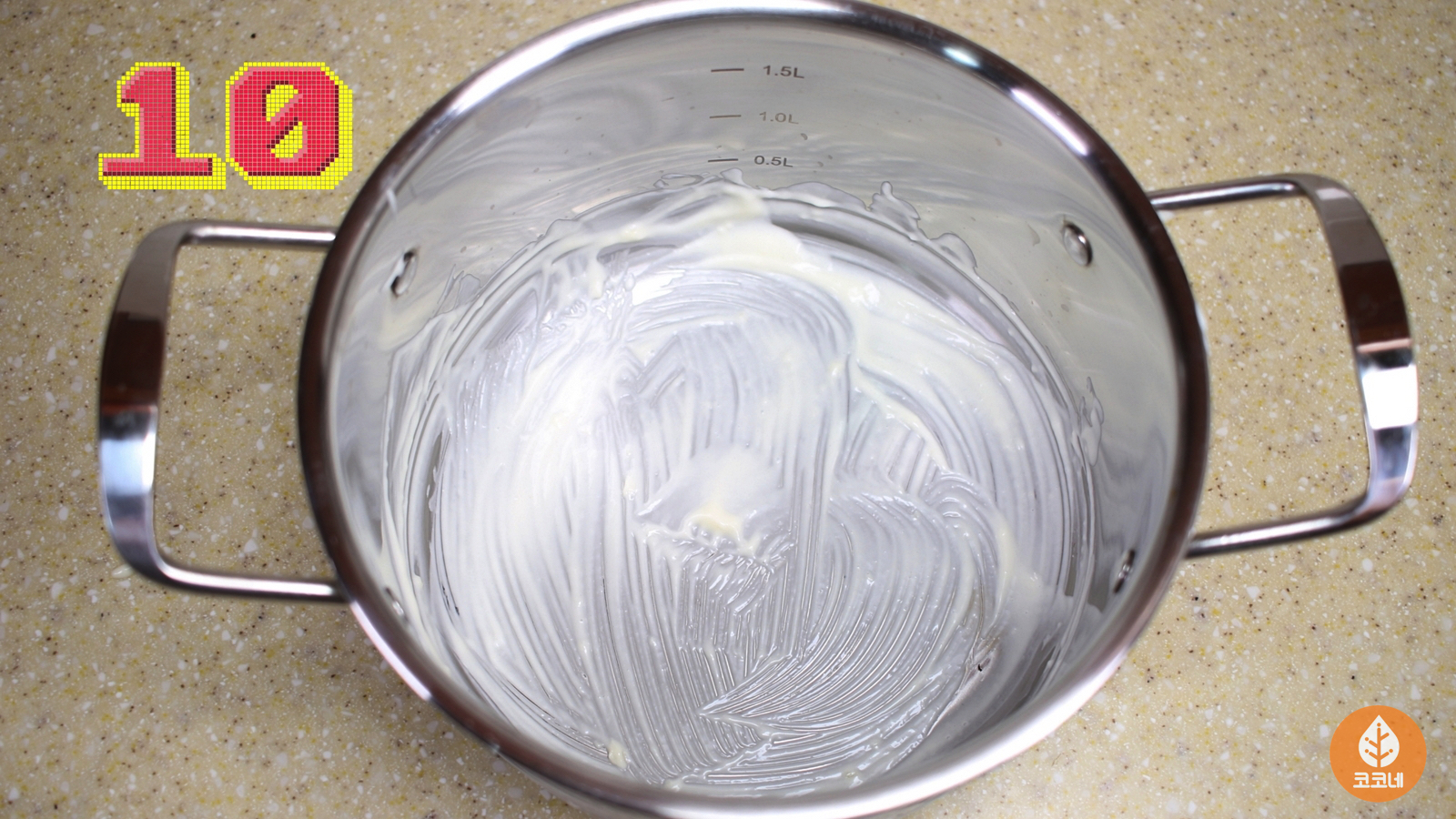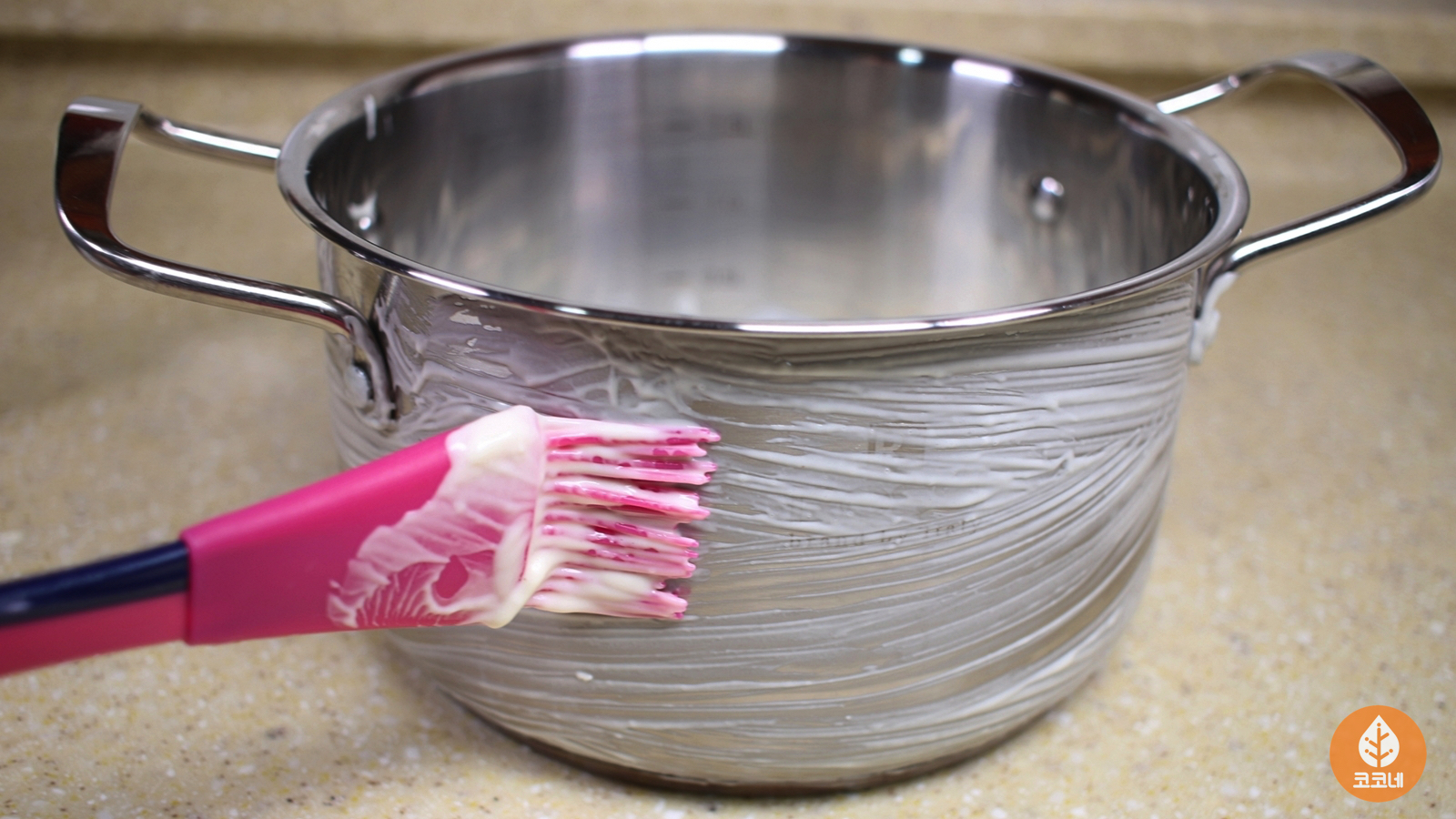 저처럼 냄비 바깥쪽에도 발라주면 좋아요.