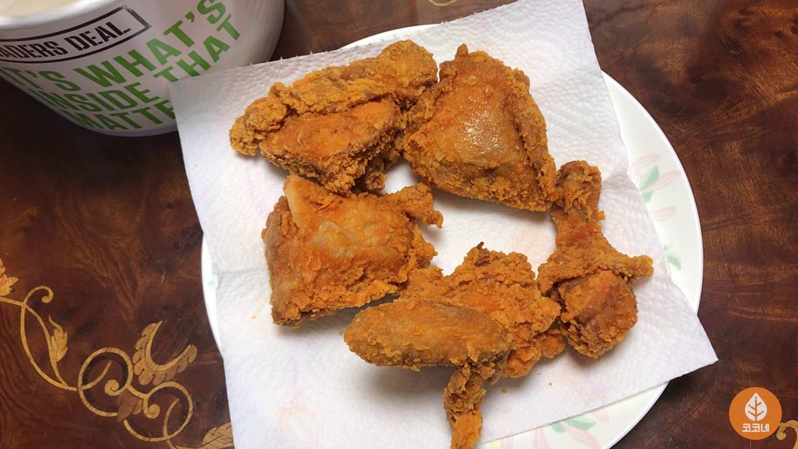 전자레인지로 데운 치킨이에요.