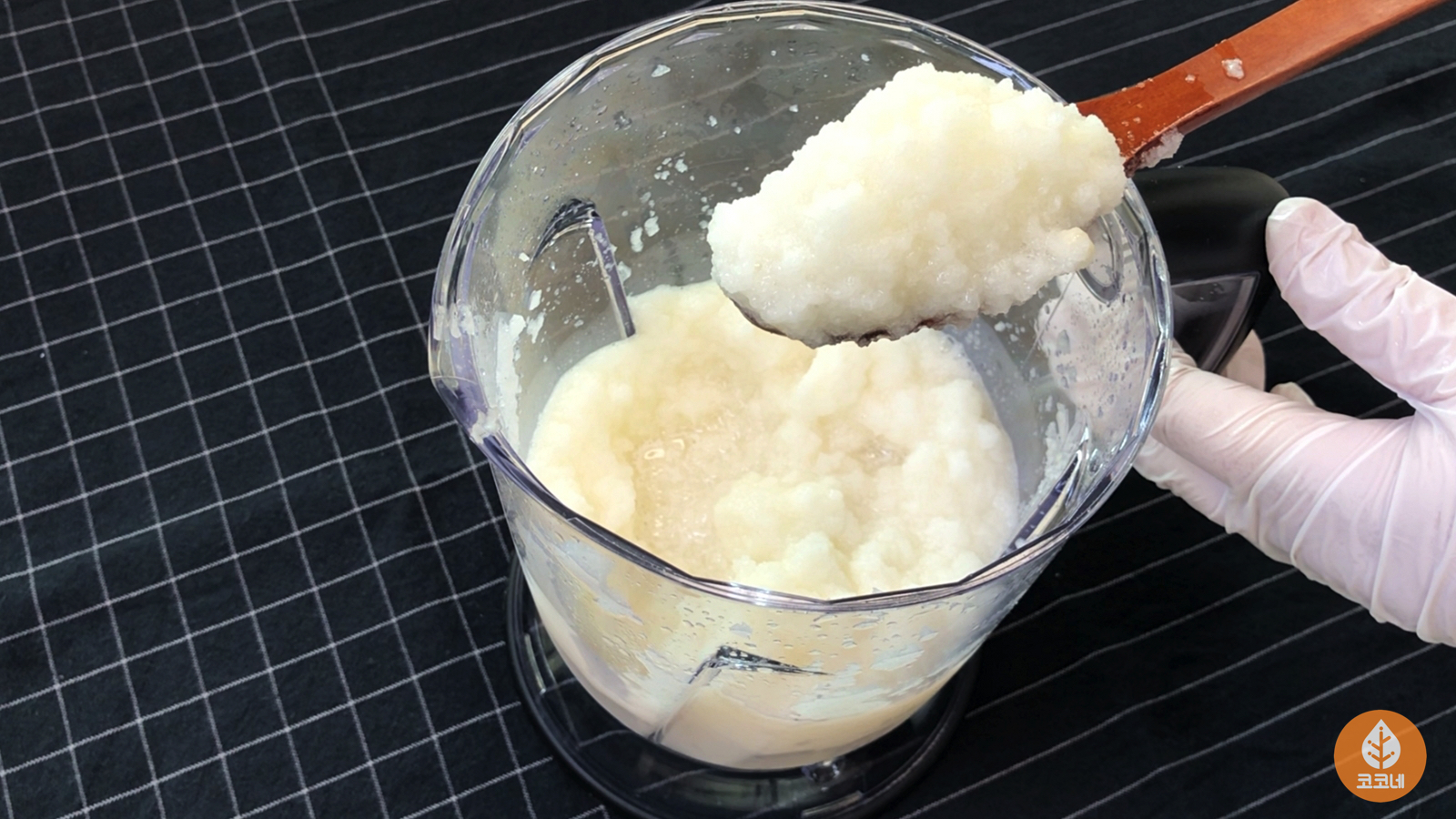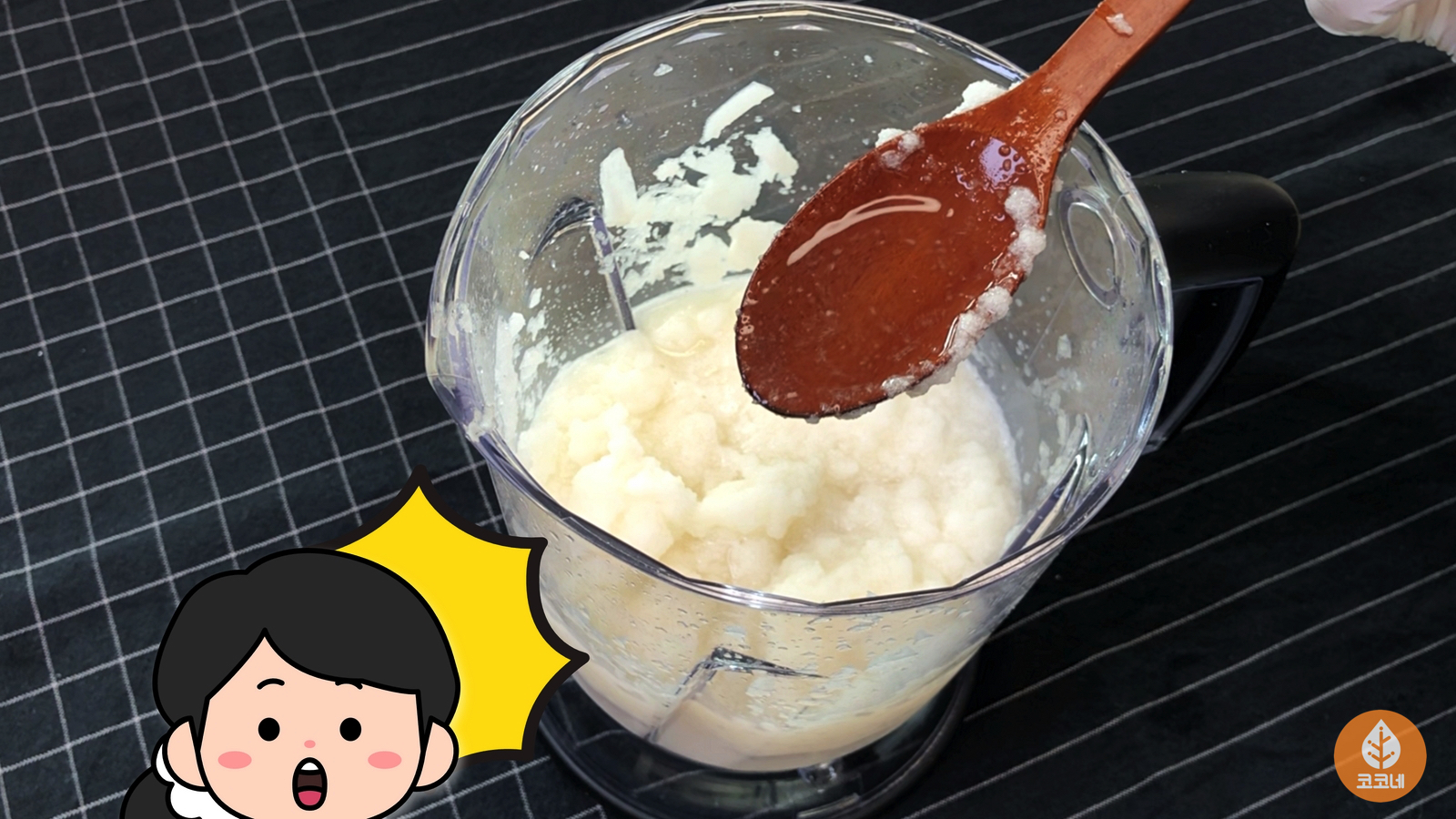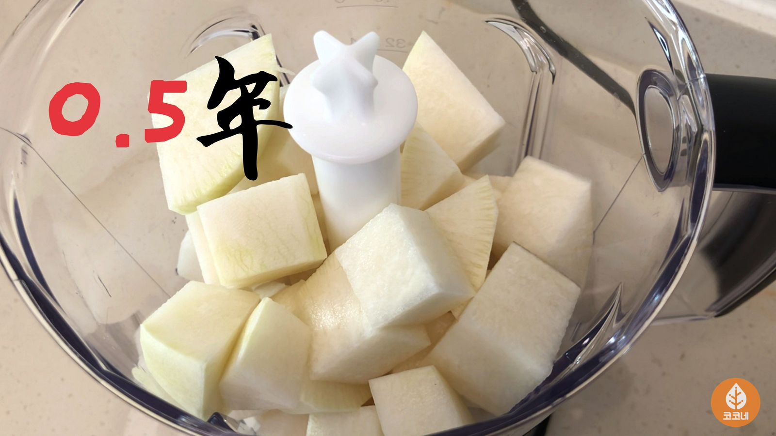 물을 추가하면 무가 더 곱게 잘 갈려요~