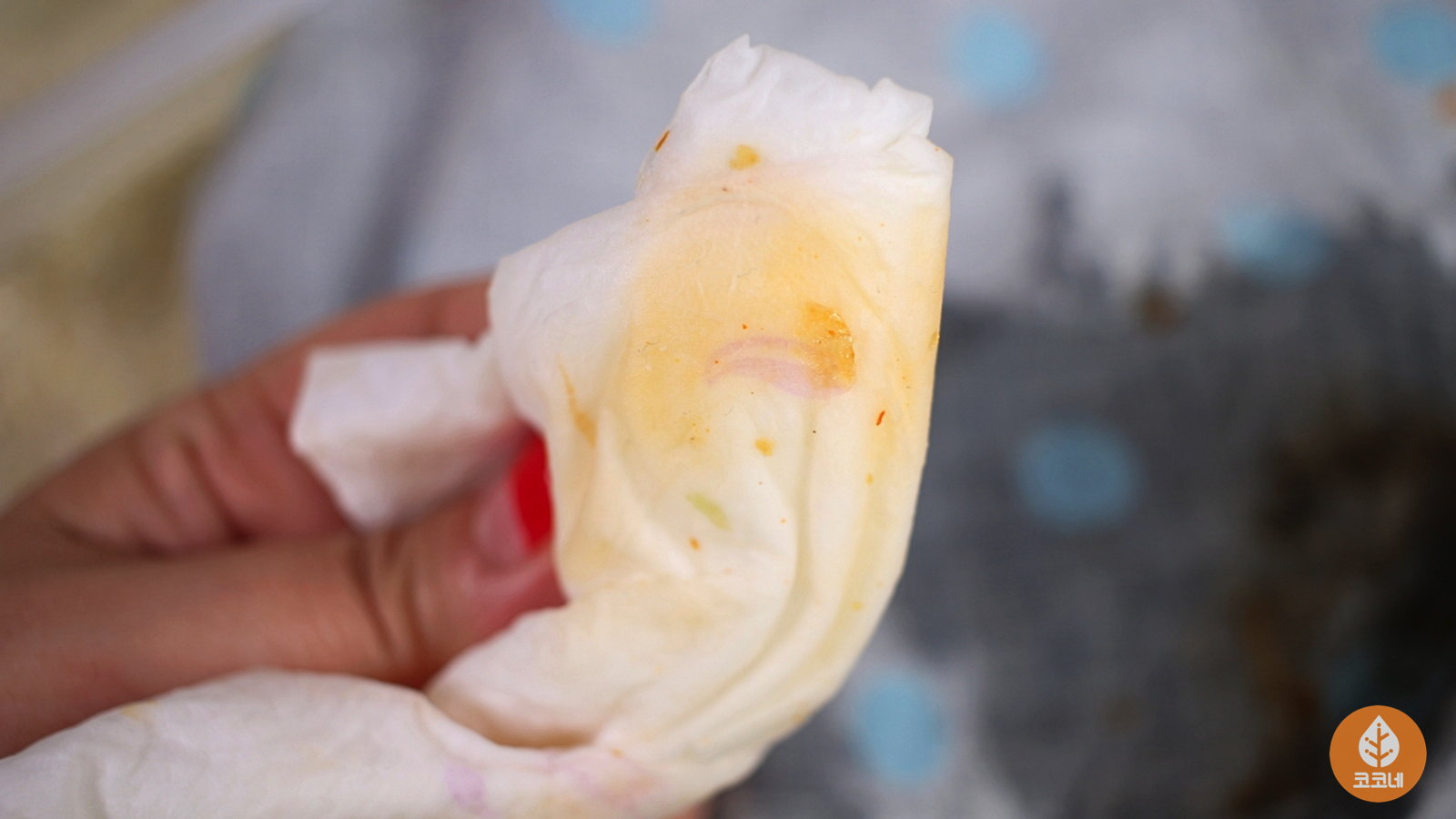 소스 얼룩이 키친타월에 스며들도록 해주세요.