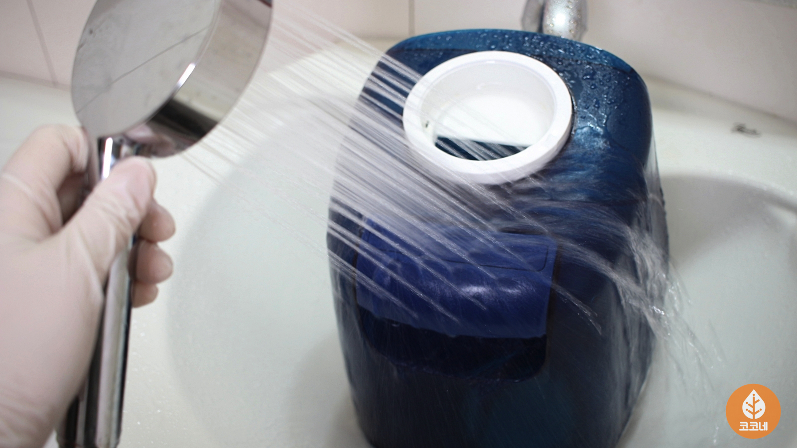 비닐로 완벽하게 감싸고 청소해야 돼요!