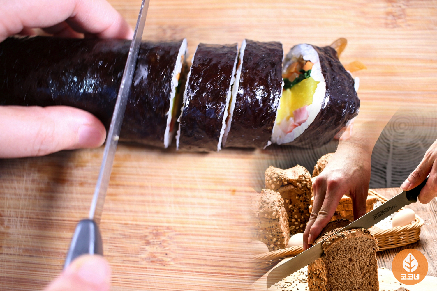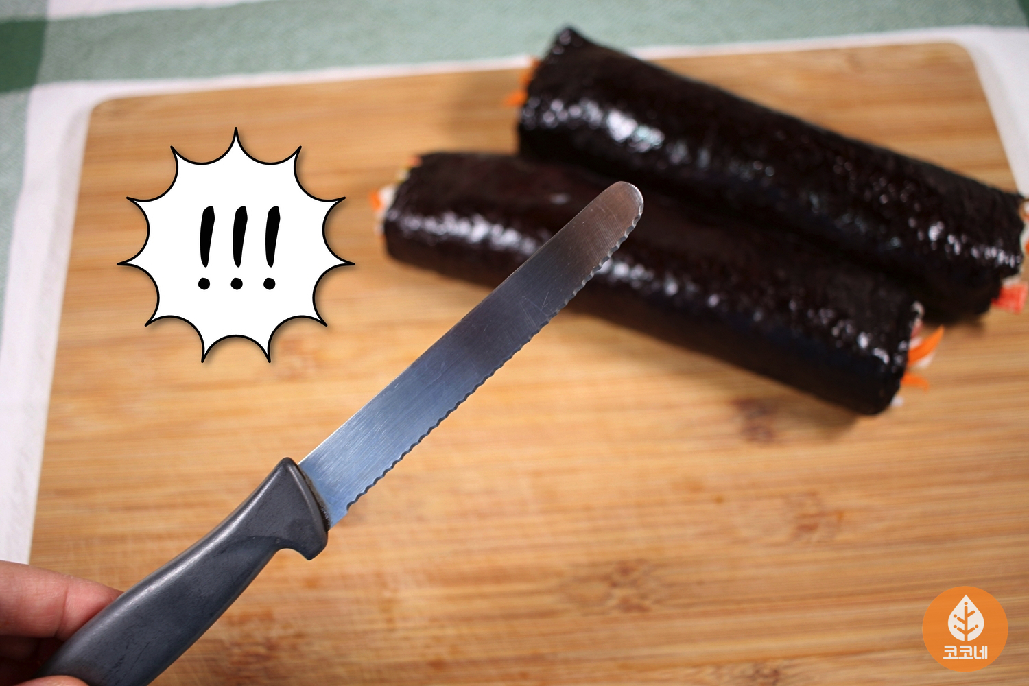빵이 아니라 김밥을 썰어보세요.