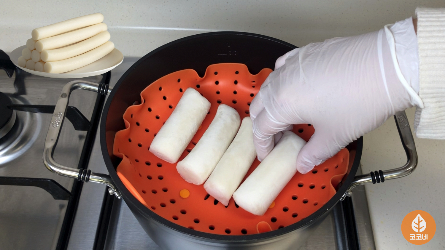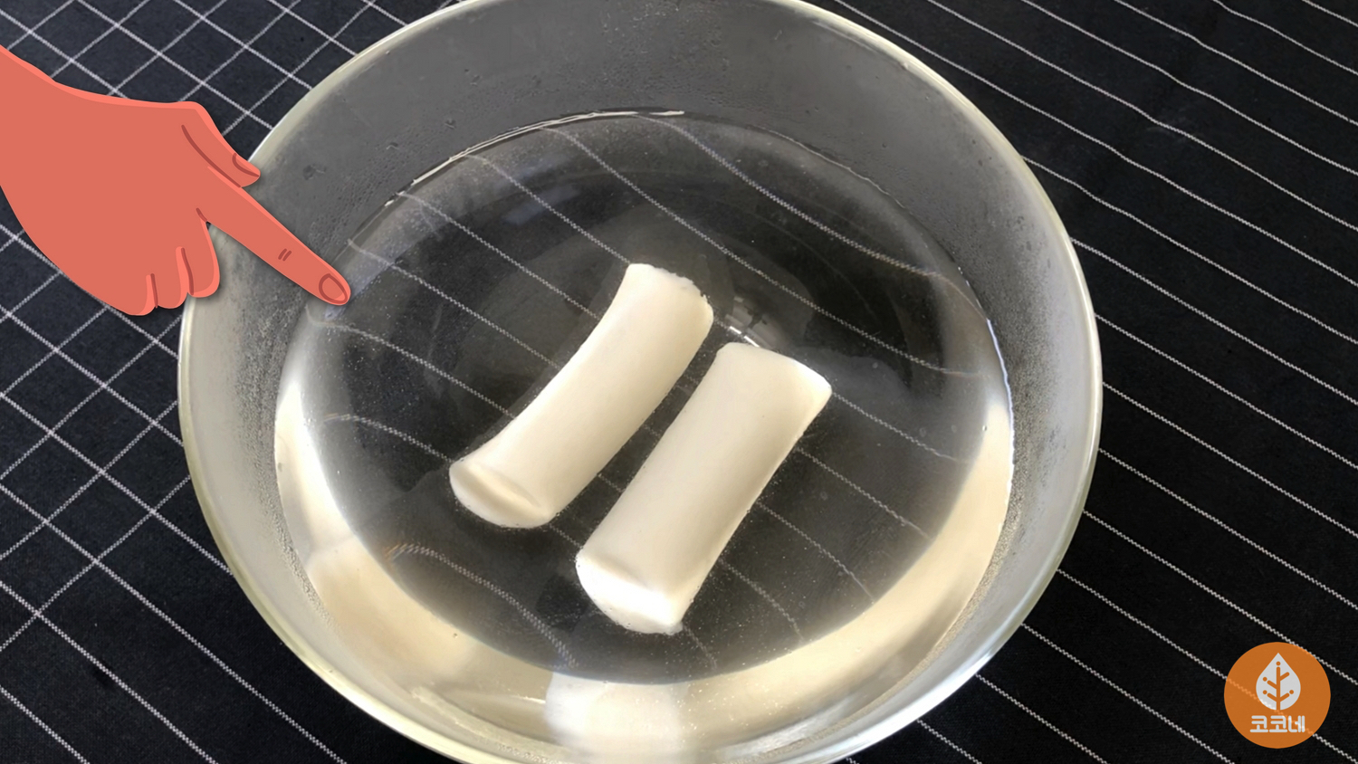 뜨거운물 속에 냉동가래떡을 퐁당~