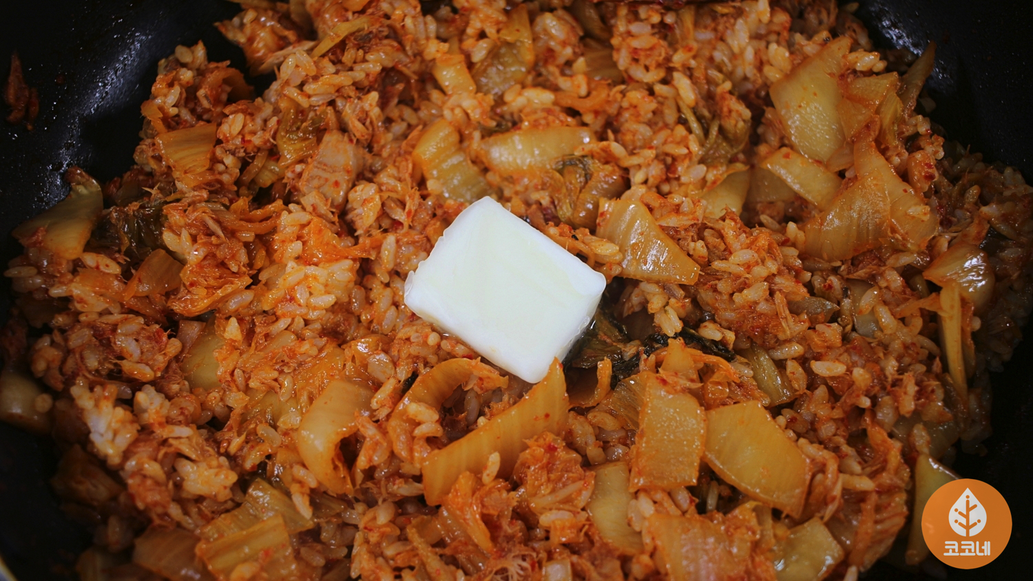 매콤달콤 풍미작렬 김치볶음밥이 완성됐어요.