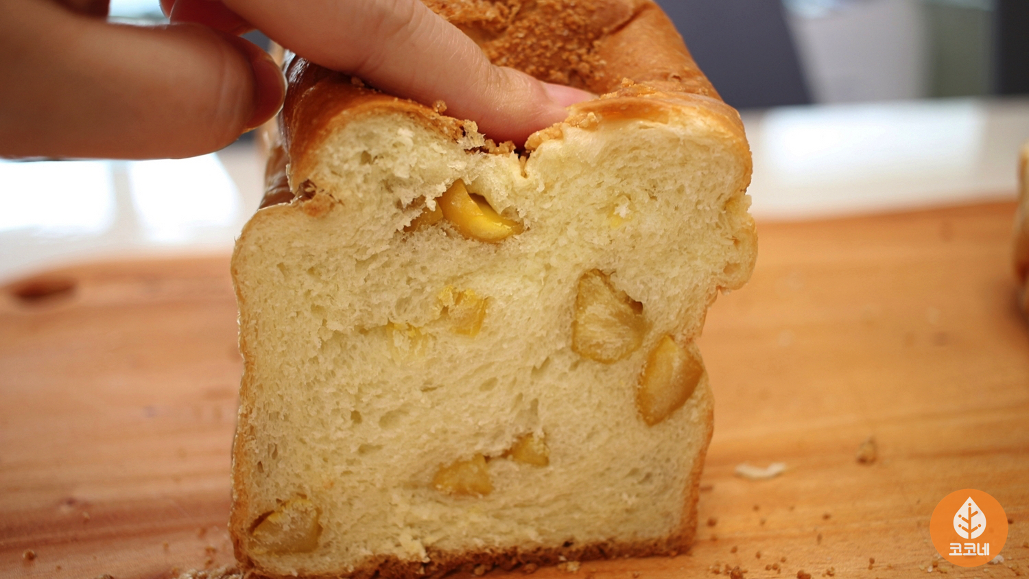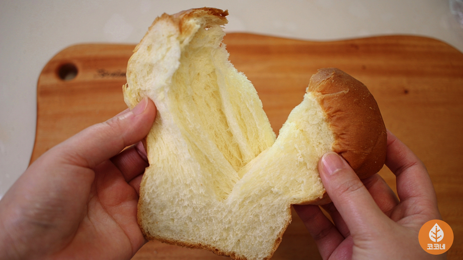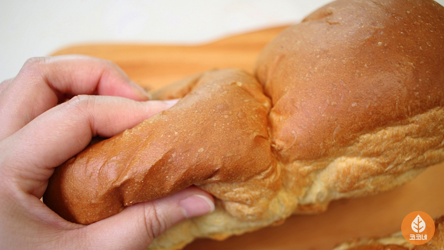 일반 식빵은 완전히 뒤집어서 잘라주시고요.