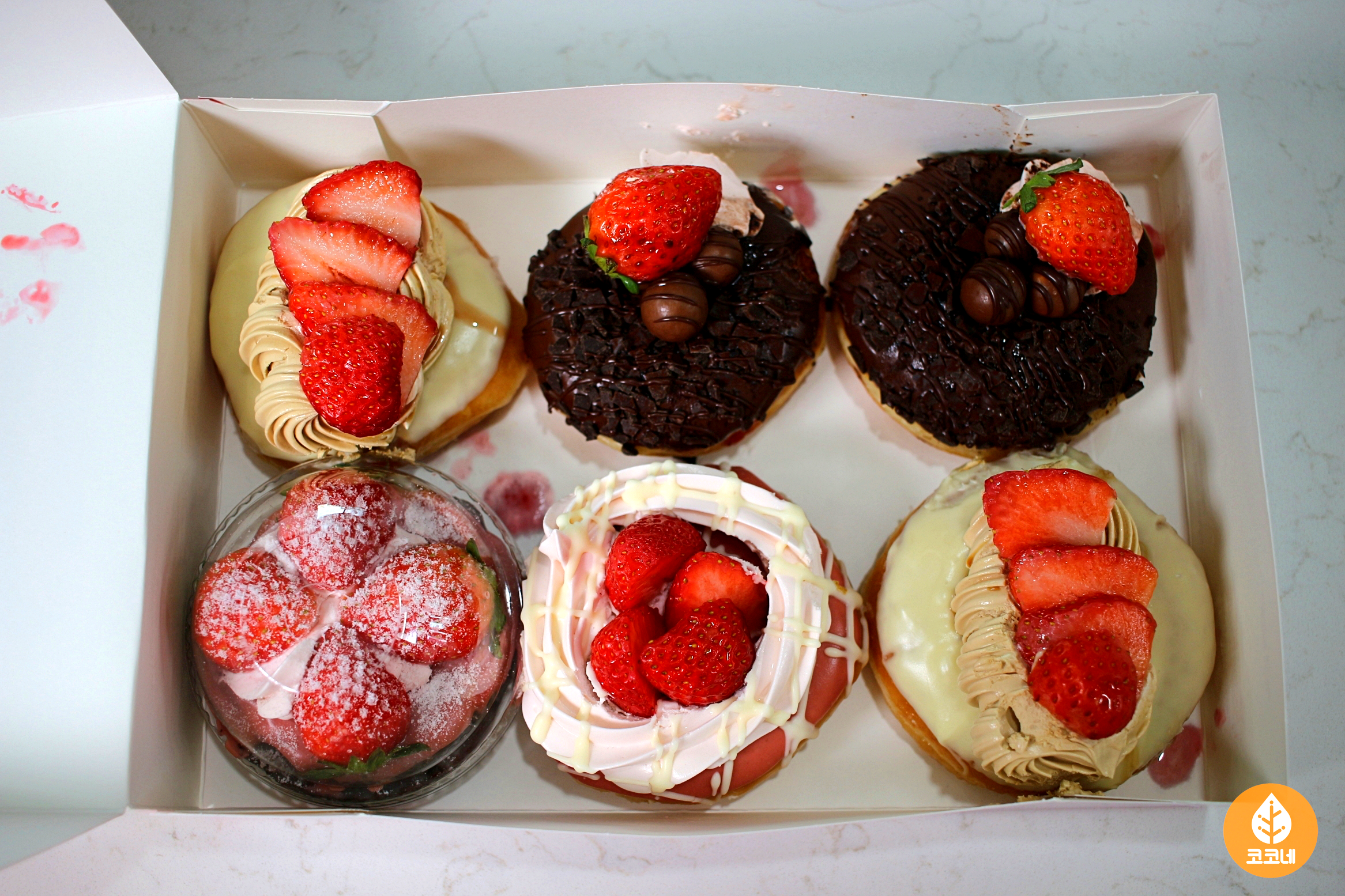 딸기 시즌 도넛 6개와