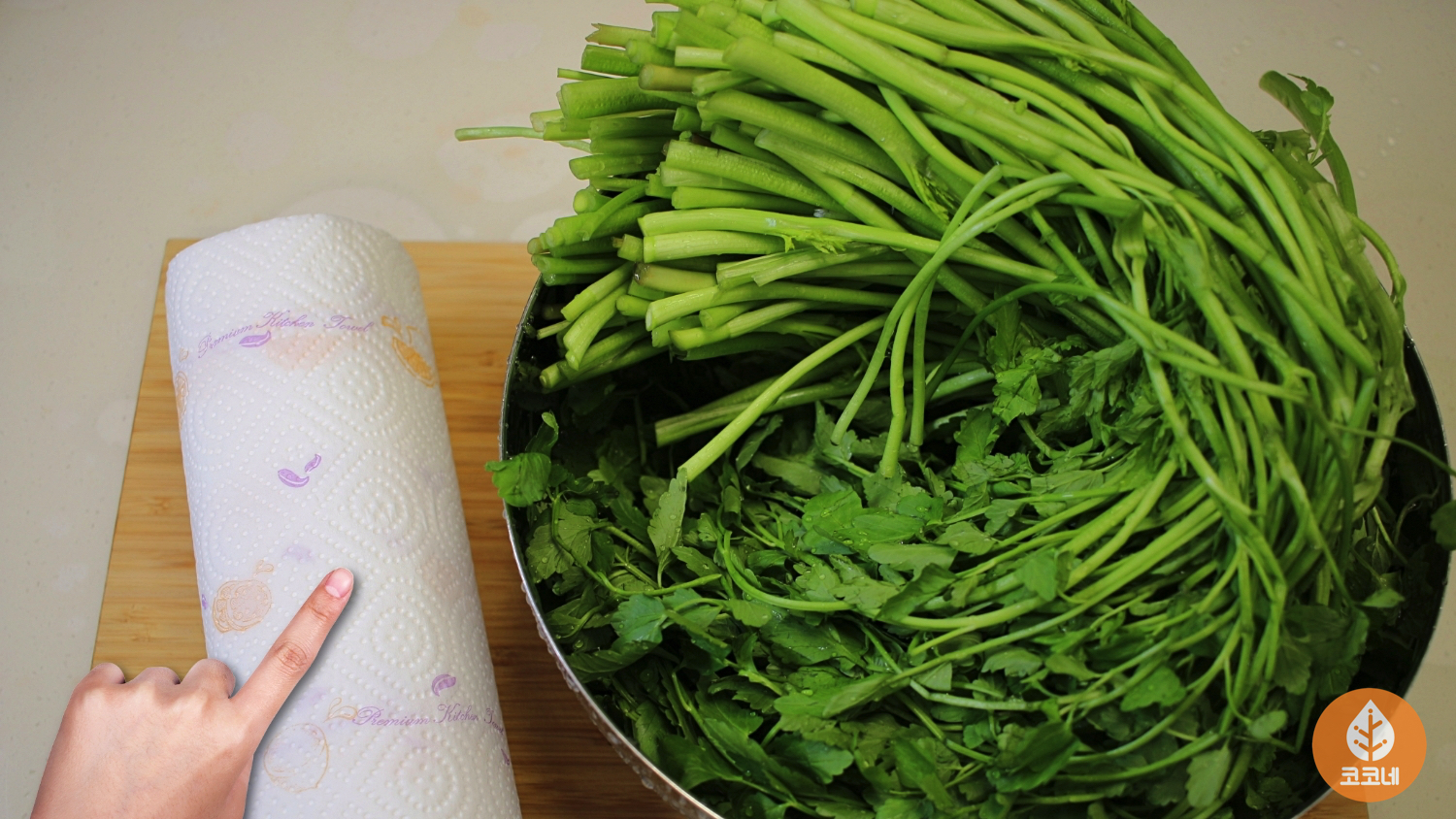 미나리를 키친타월로 감싸면 결과는 대박입니다!
