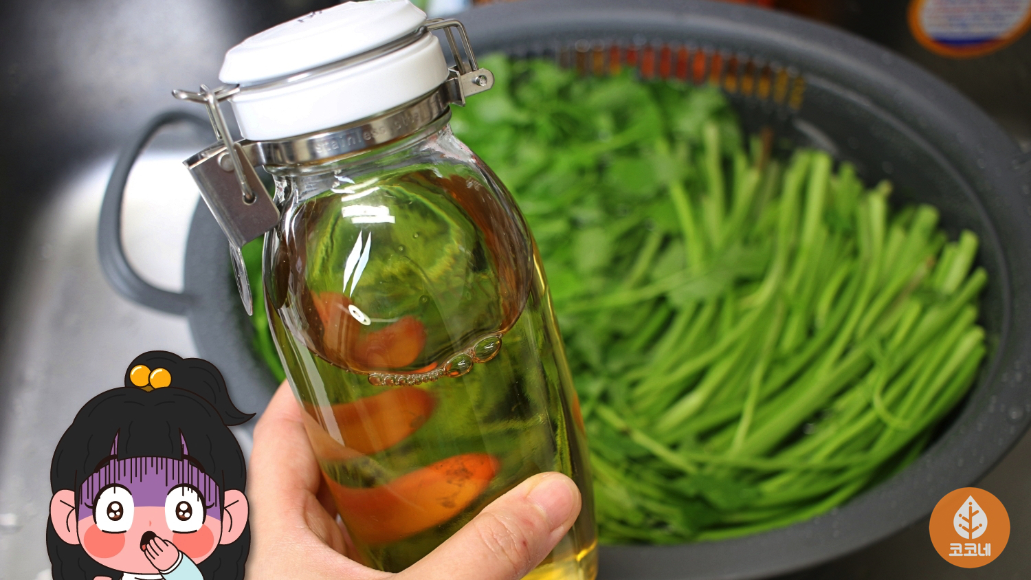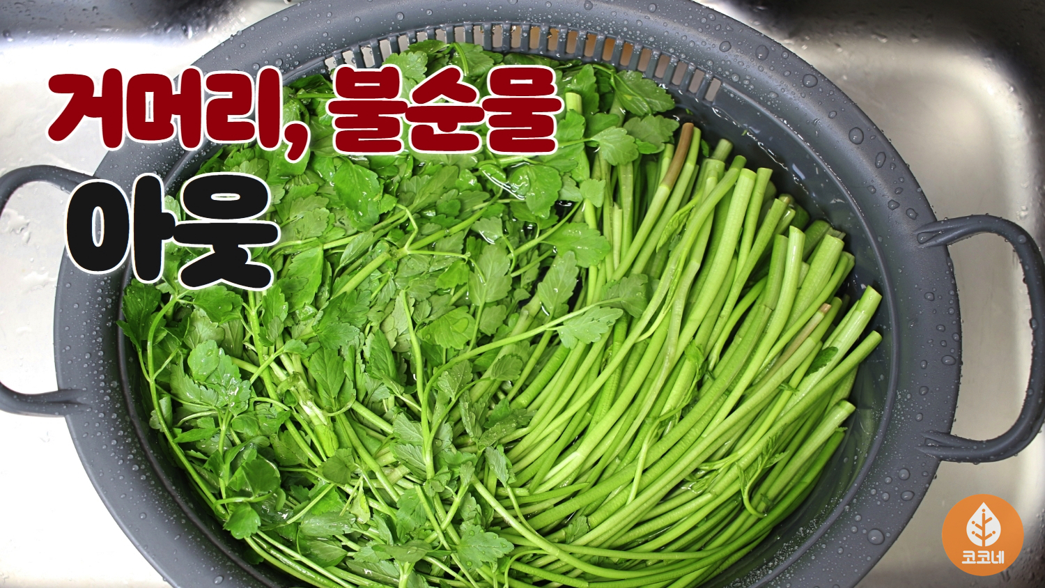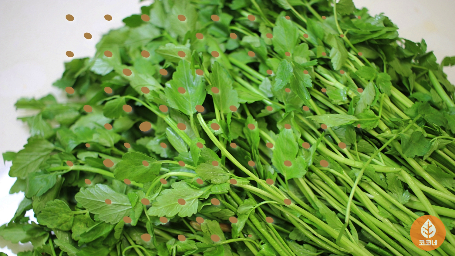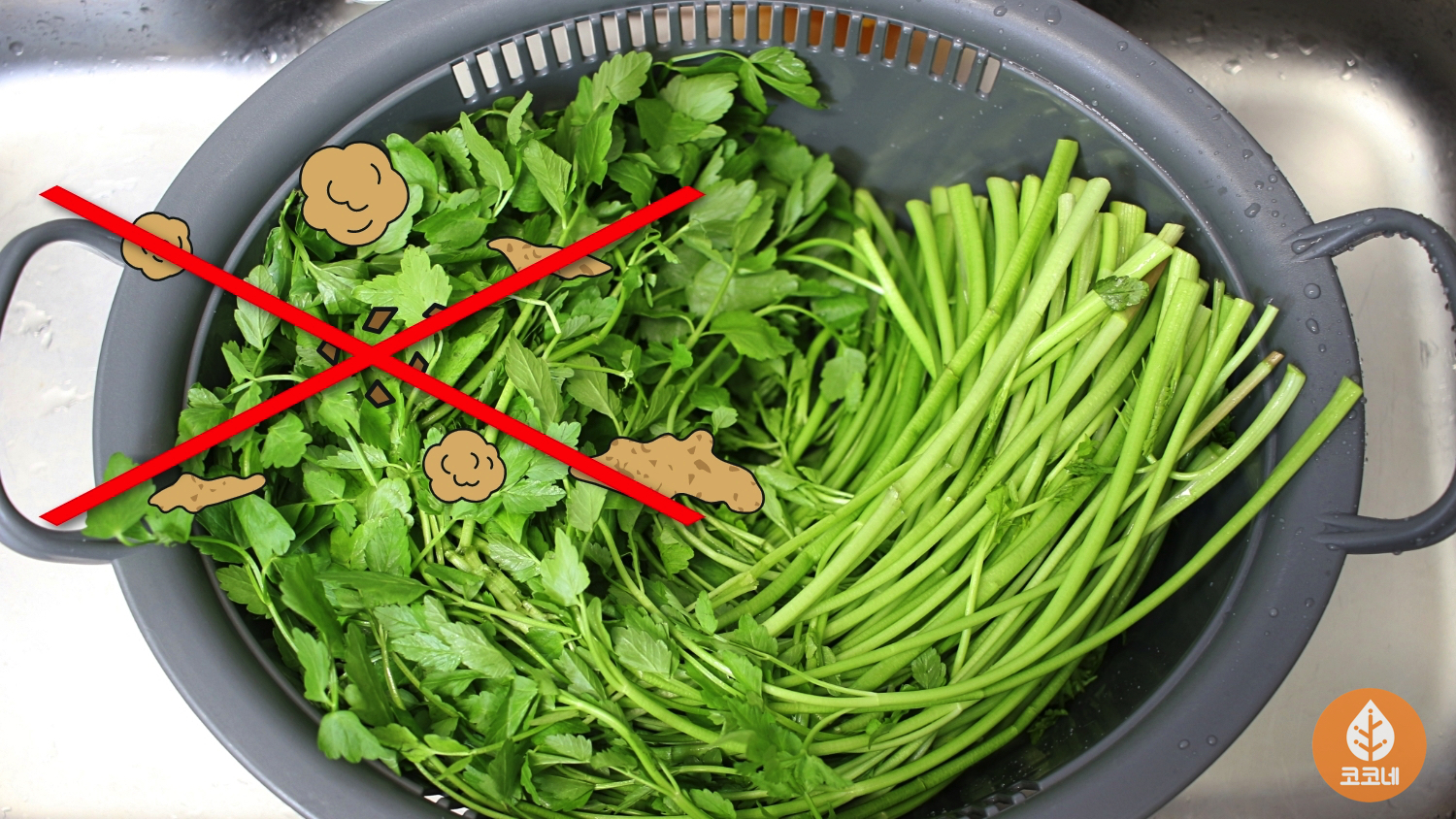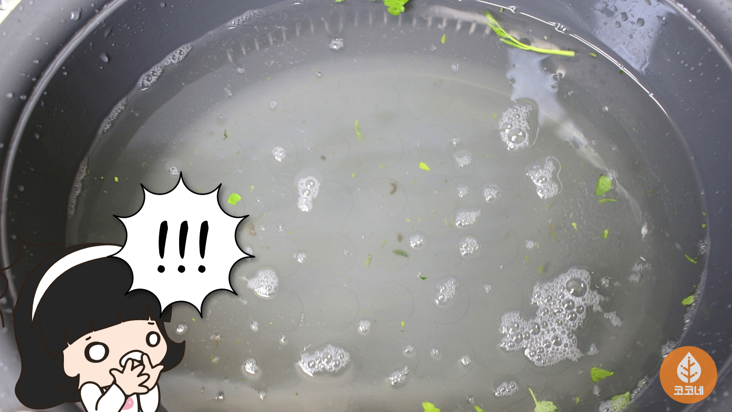 10분 뒤에 미나리줄기를 살살 흔들어서
