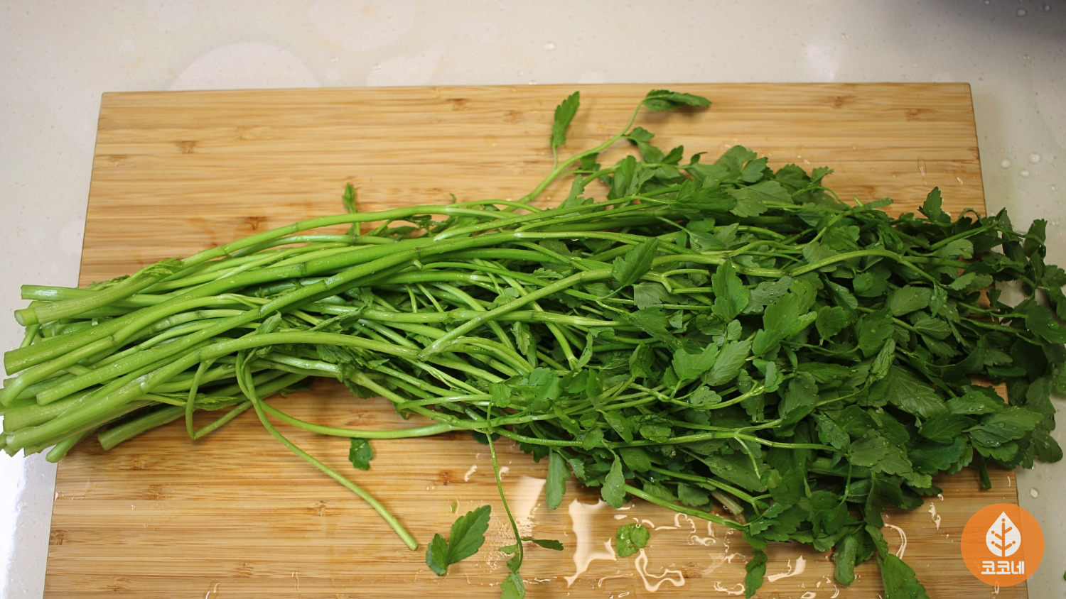 그다음 미나리를 깨끗한 물로 헹궈줄 건데요.