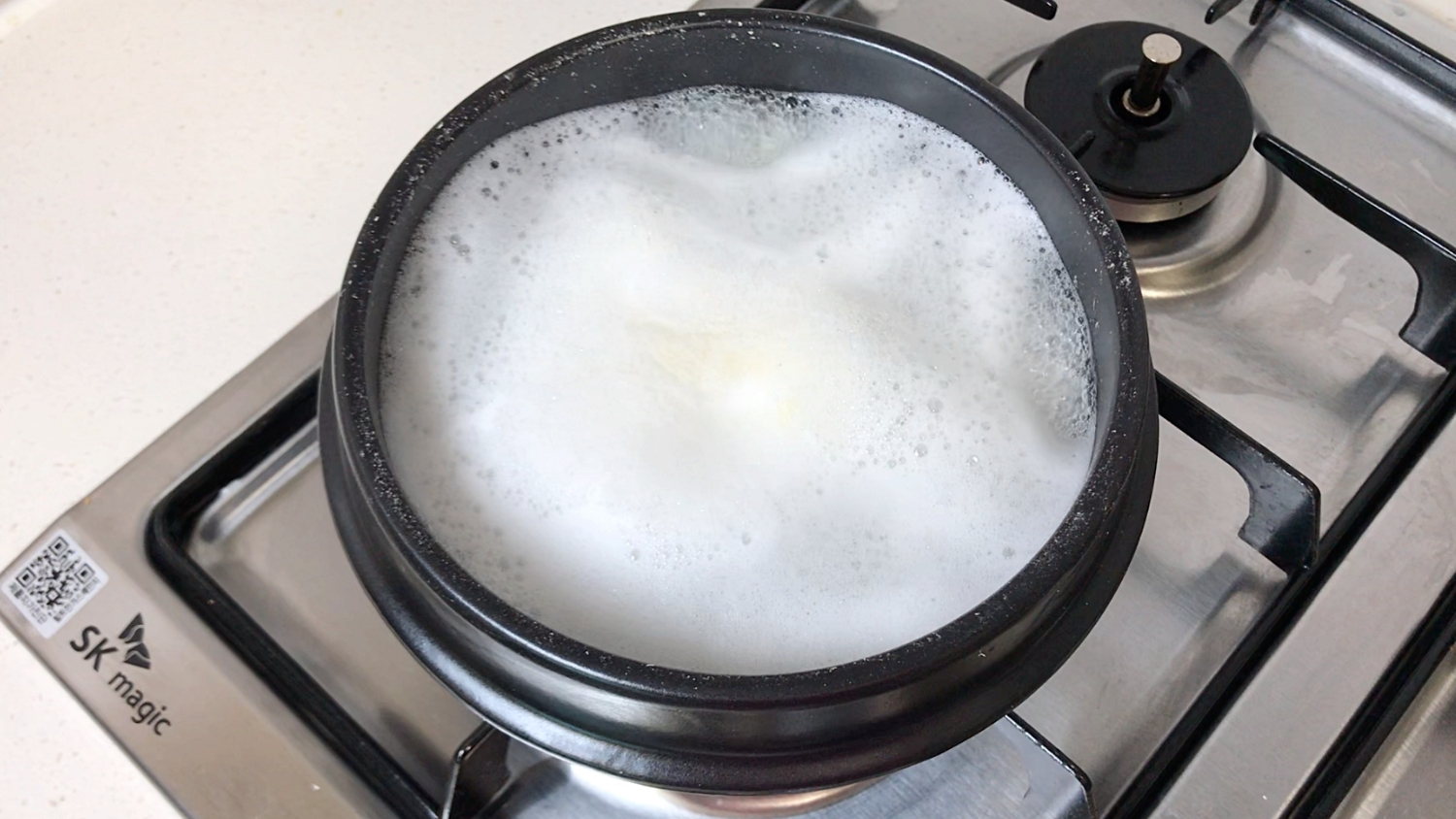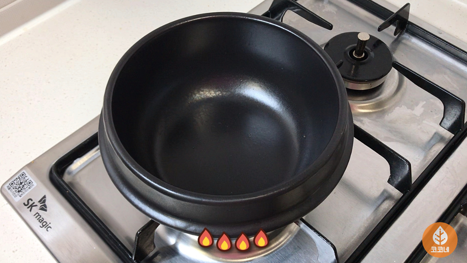 일단 뚝배기를 따뜻한 물로 헹궈주세요.