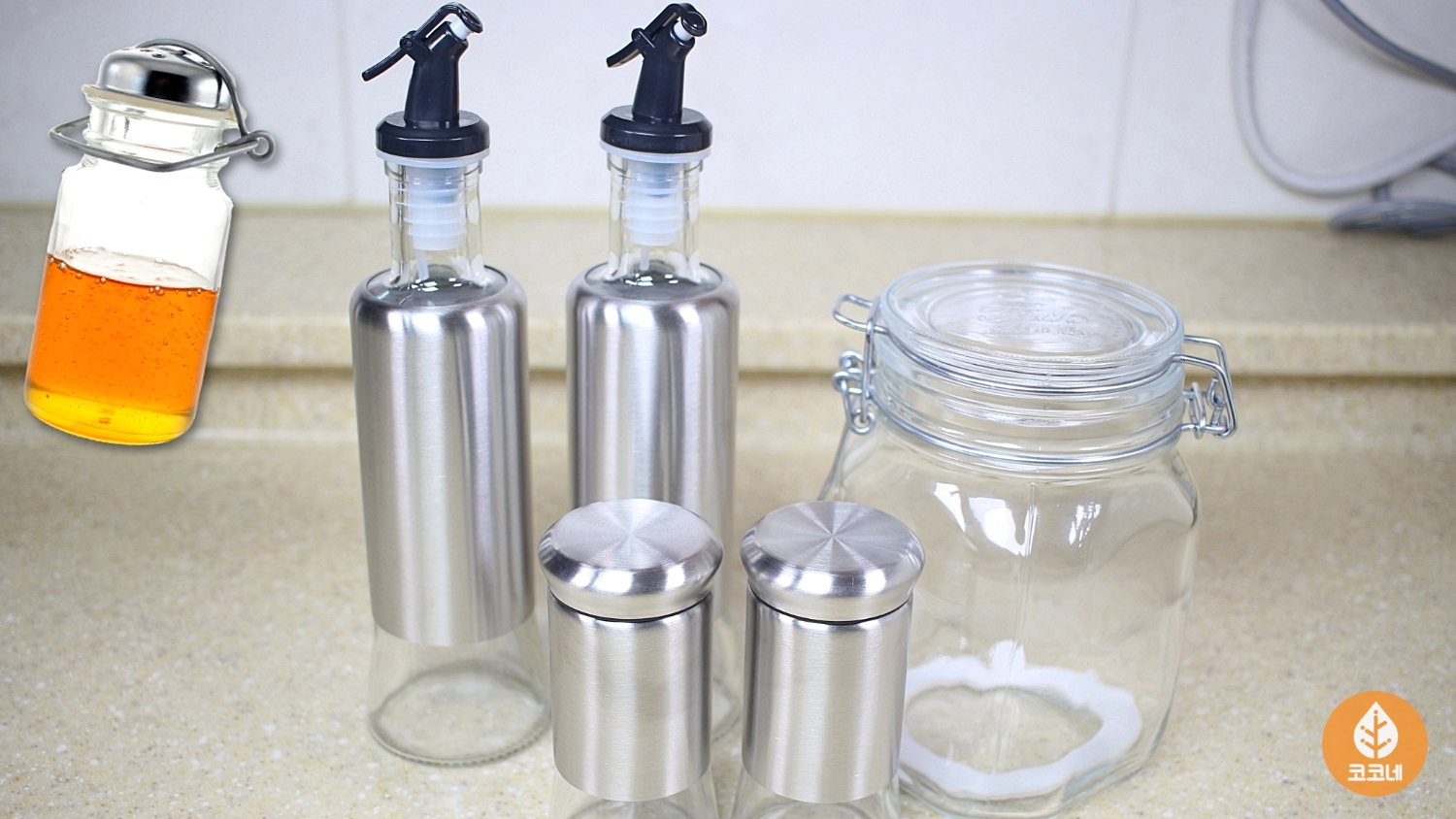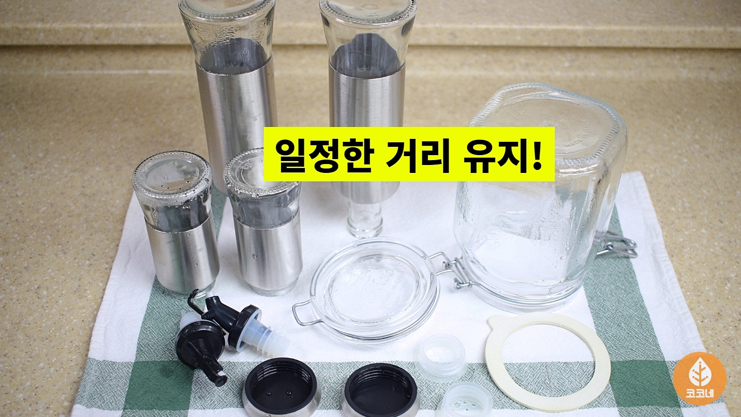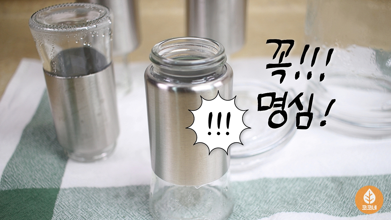 그리고 행주 위에 유리용기를 올려서