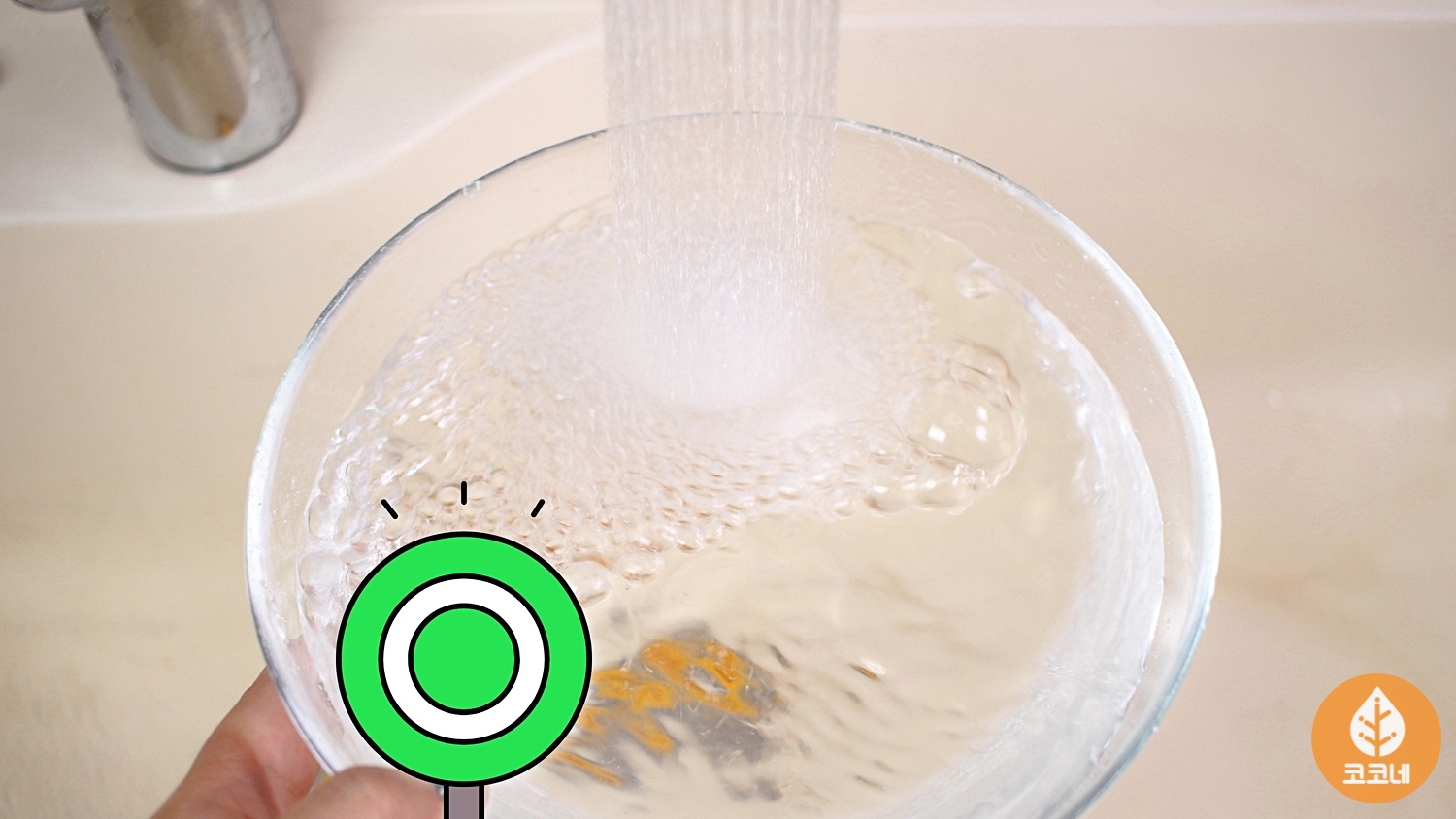 깨끗한 찬물로 3~4번 정도 씻어내는데요.