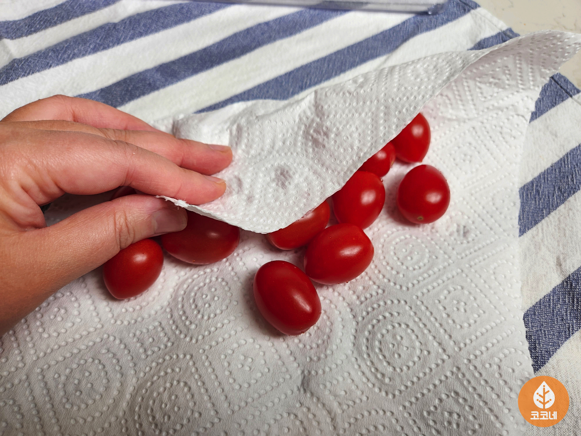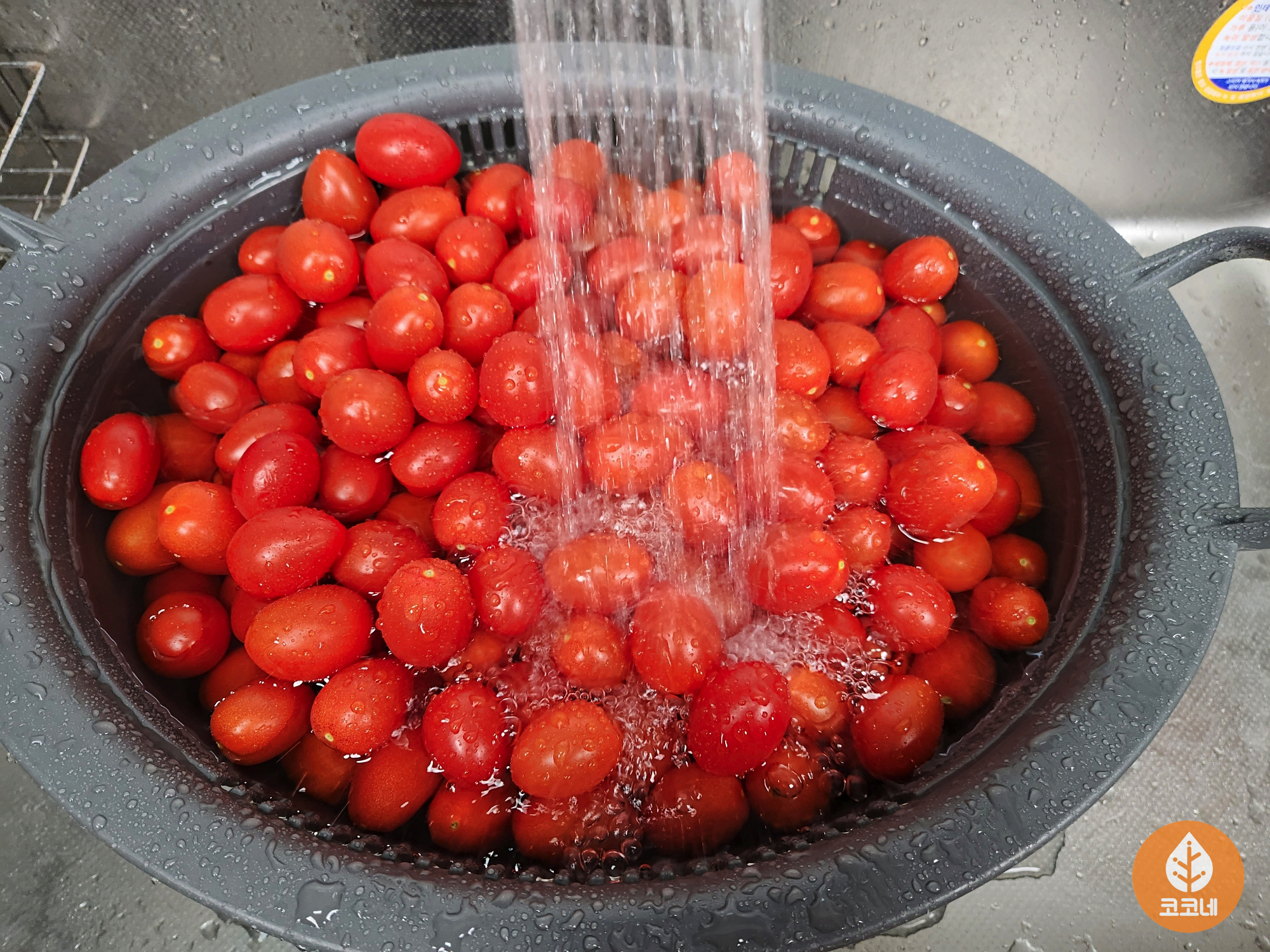 그리고 방울토마토의 꼭지를 몽땅 떼주세요!