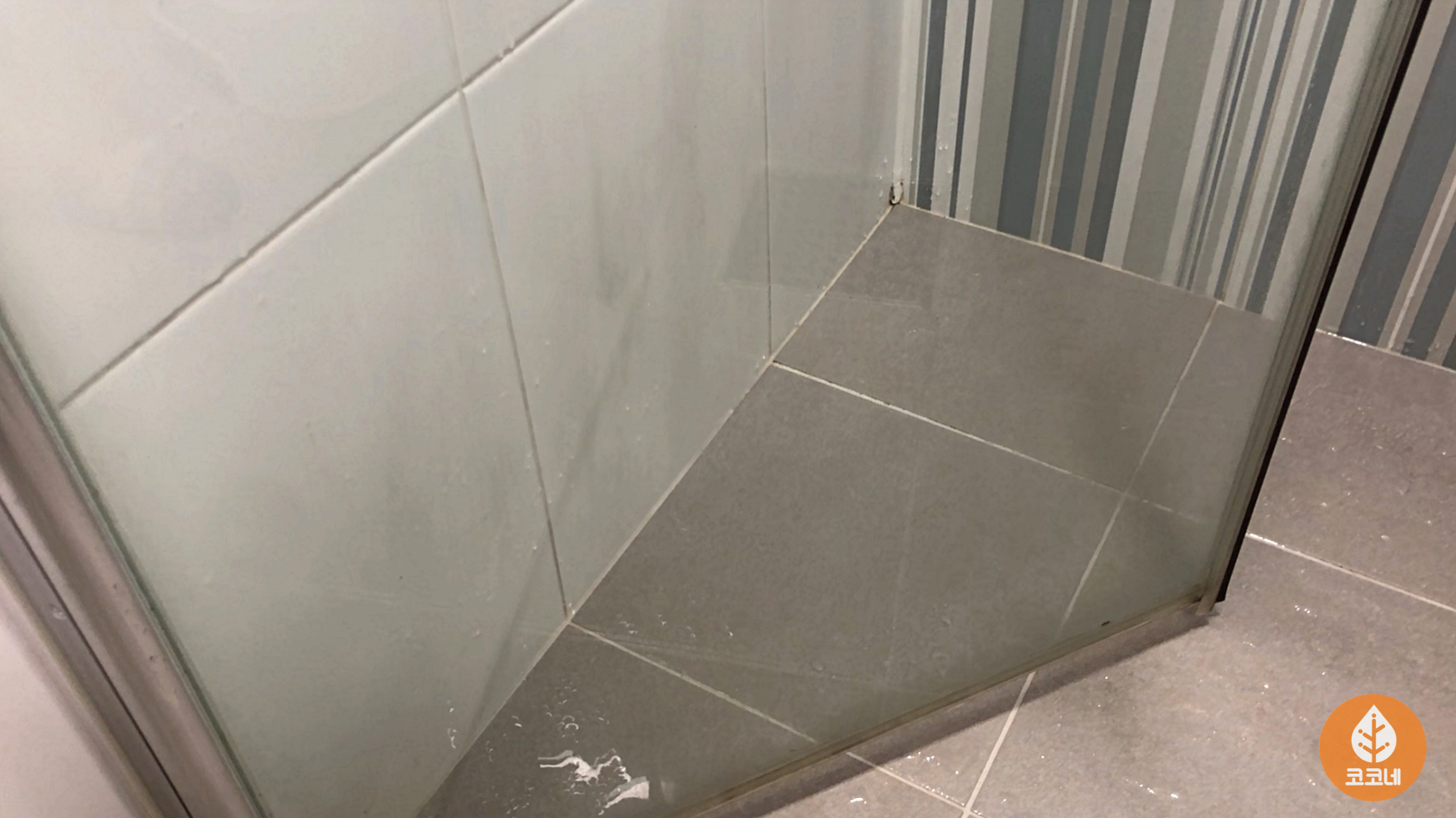 샤워부스도 비눗물때가 장난이 아닌데요.