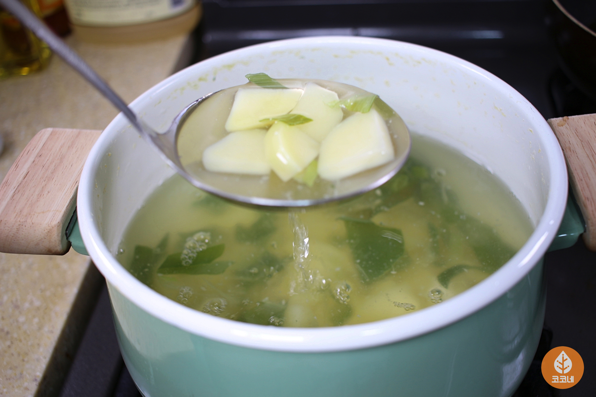 국자를 다시 살짝만 담갔다가 빼면