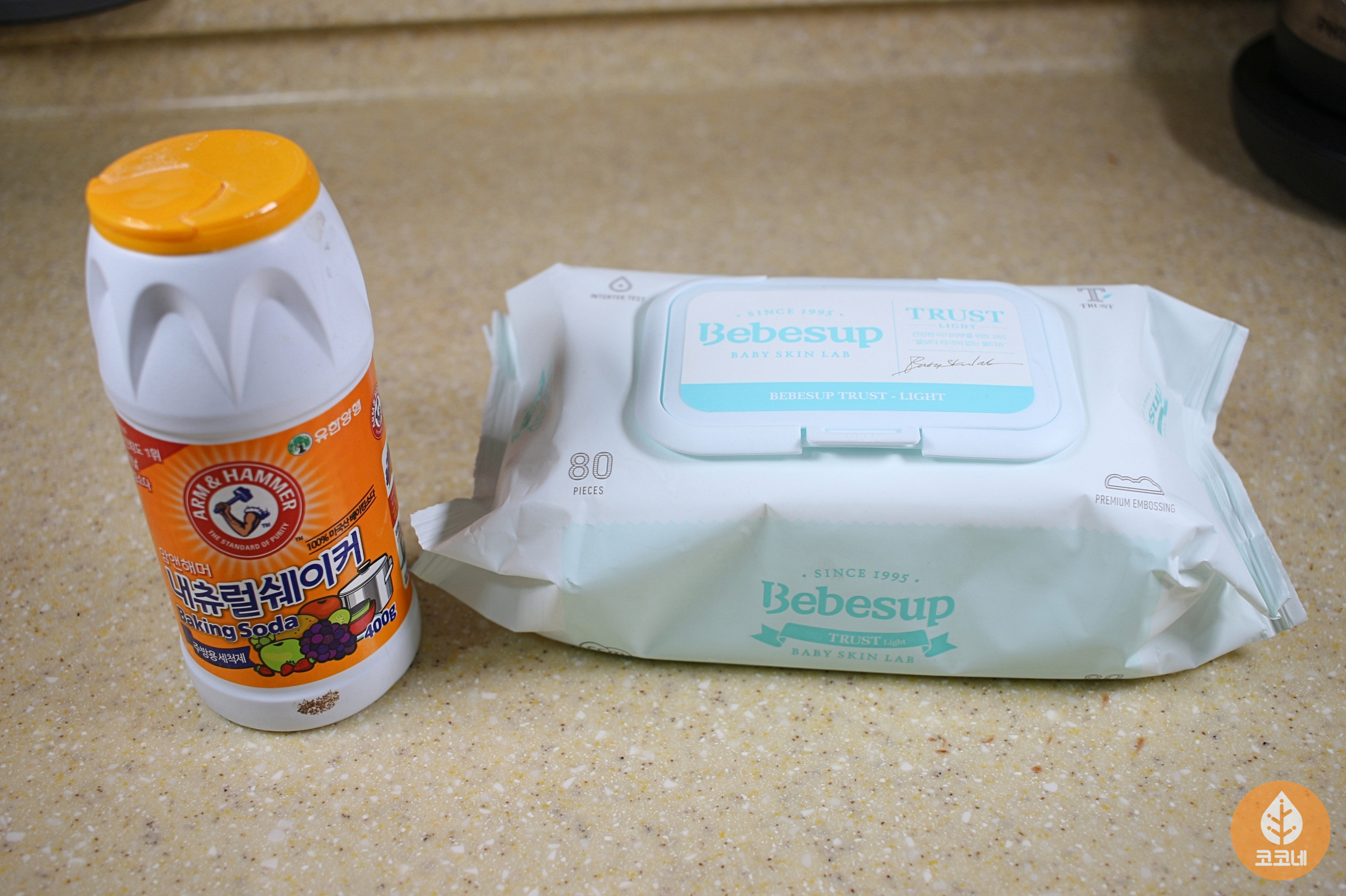 베이킹소다와 물티슈로