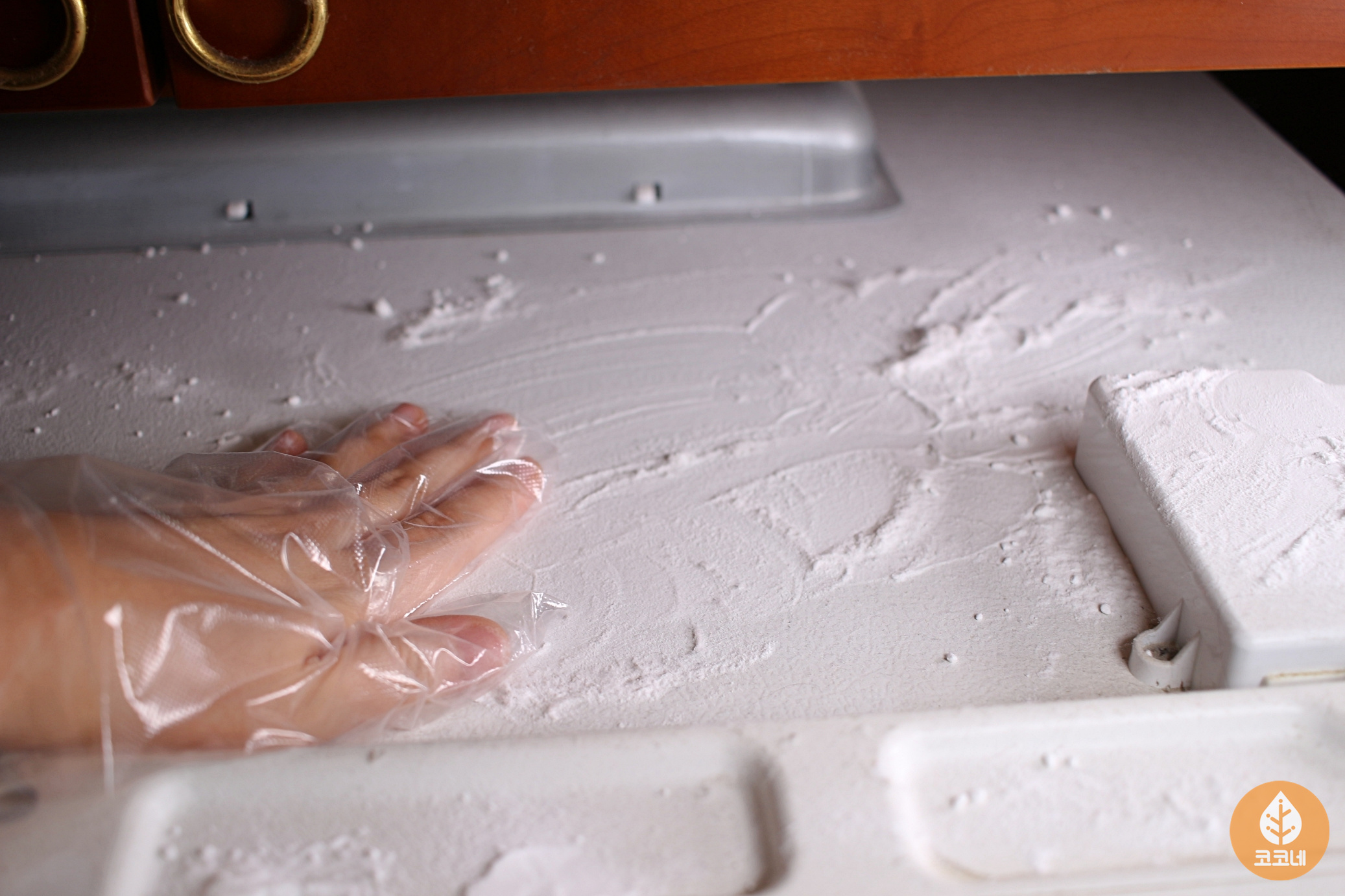 냉장고 윗면에 베이킹소다를 뿌리고