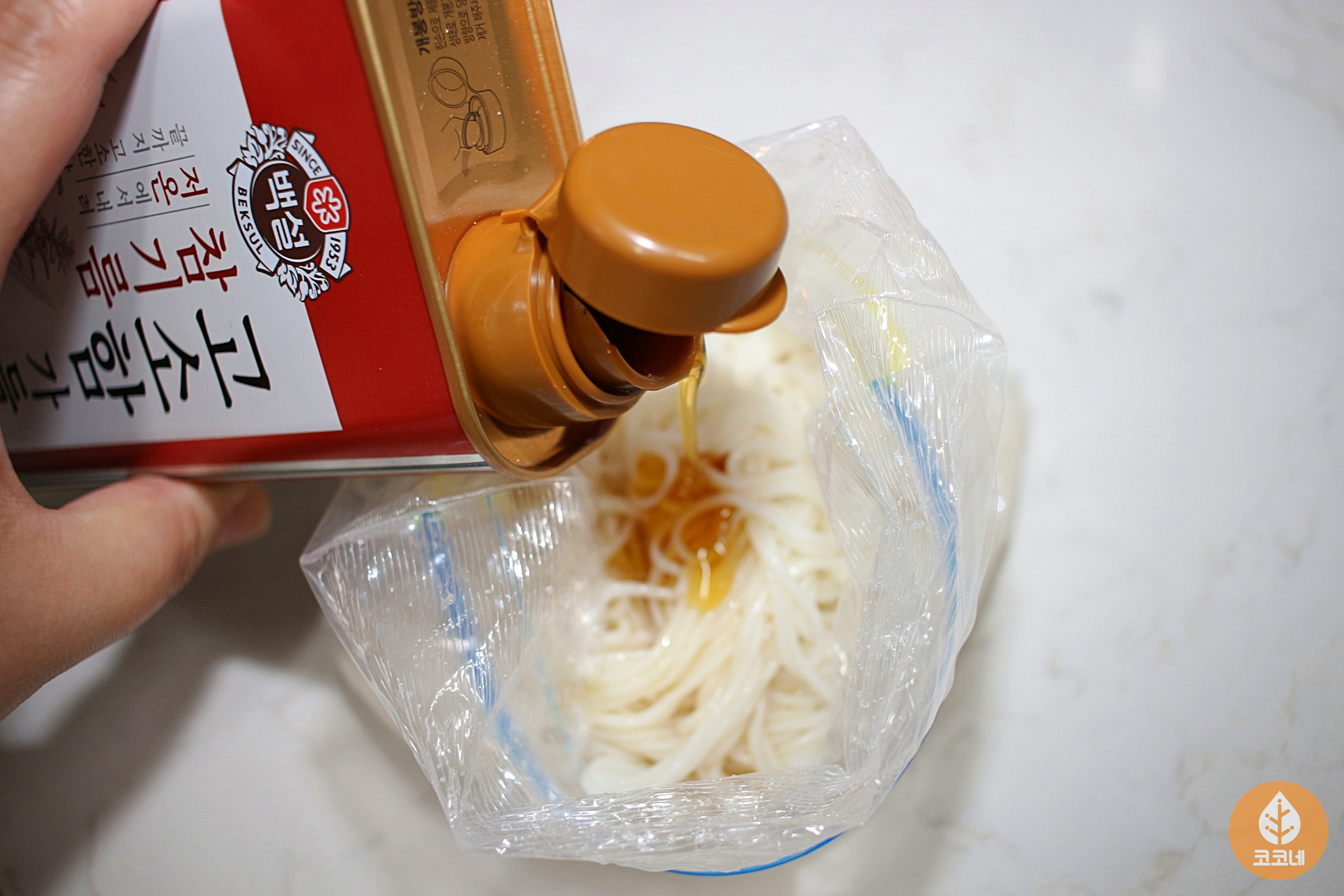 참기름을 한큰술만 넣어주세요.