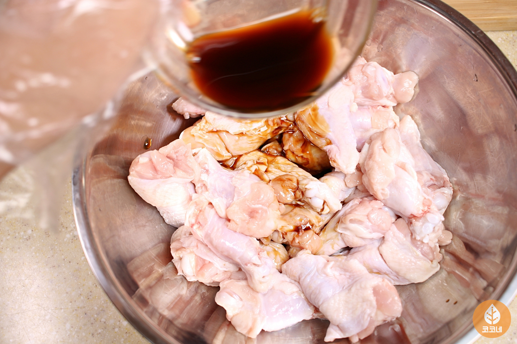 재료는 닭고기, 콜라, 우유, 간장, 굴소스, 맛술.