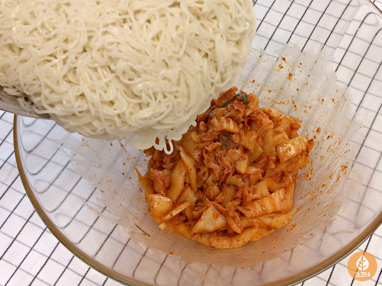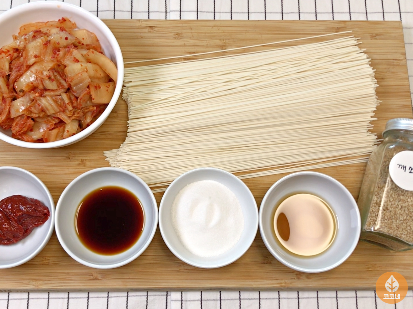 재료는 소면과 잘 익은 김치면 충분하고요.