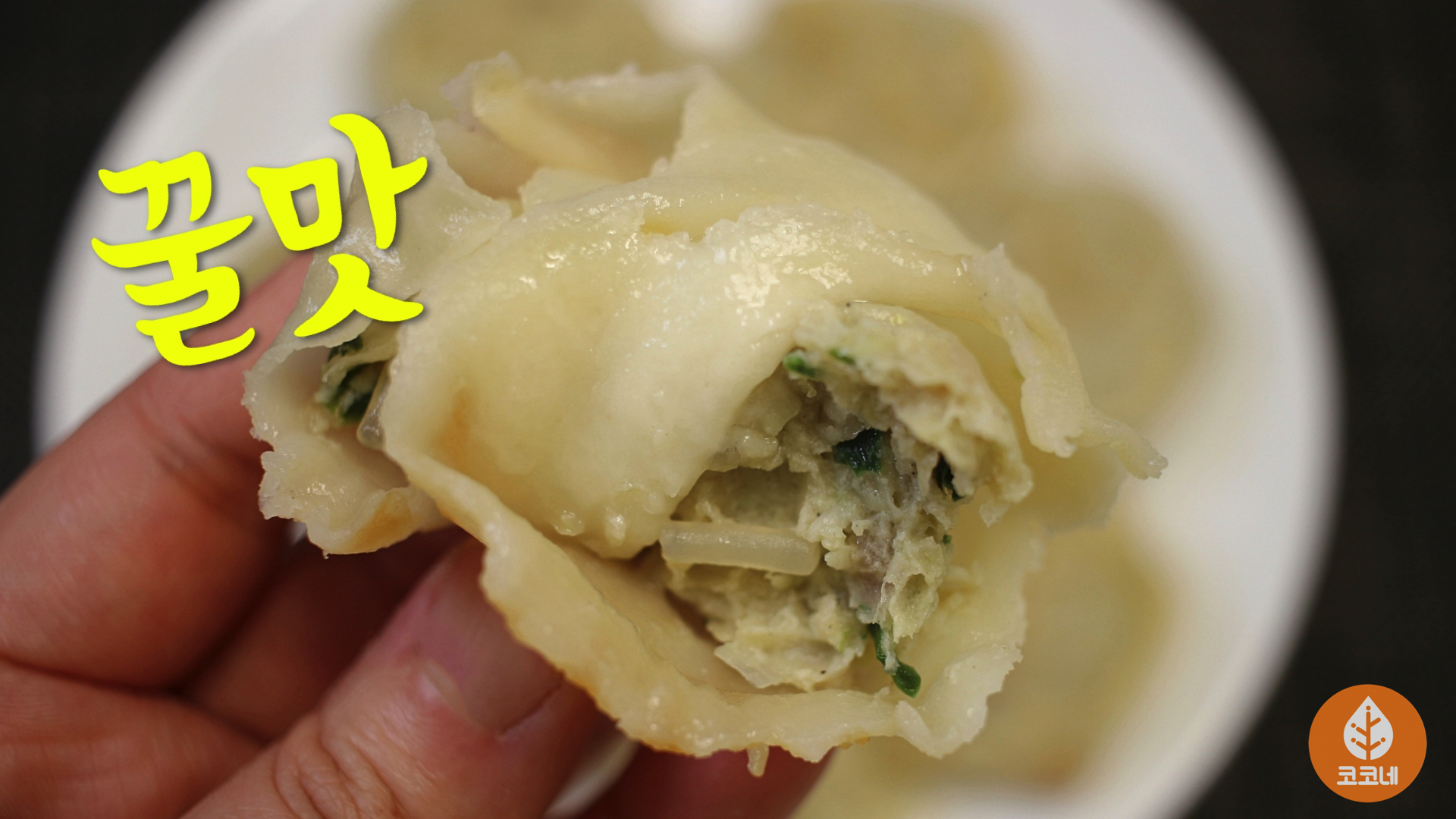 만두피를 이중으로 더 쫀쫀하게 만들어줘요.