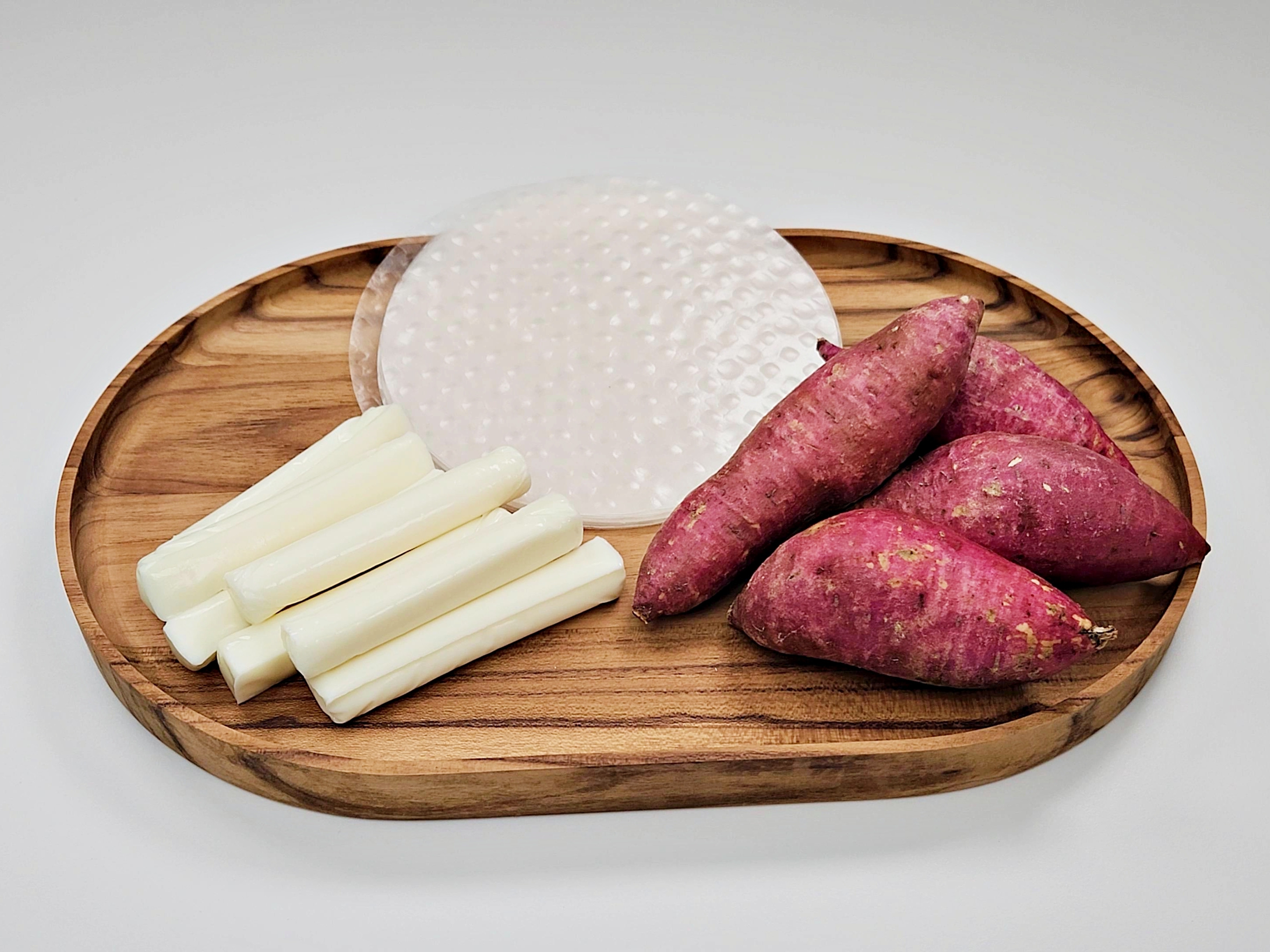재료는 고구마, 스트링치즈, 라이스페이퍼 준비해 주세요.