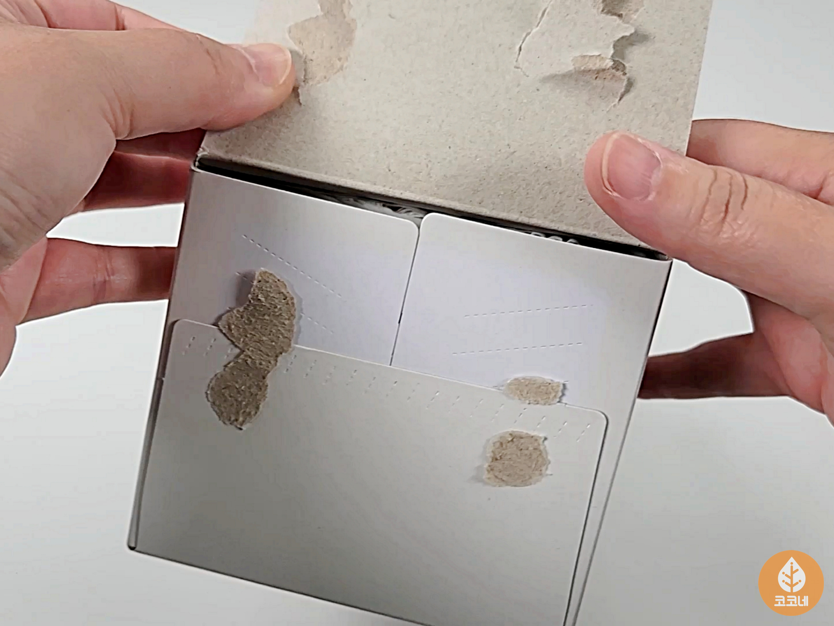 이등분한 티슈를 다시 박스 안으로 넣어주시고요.