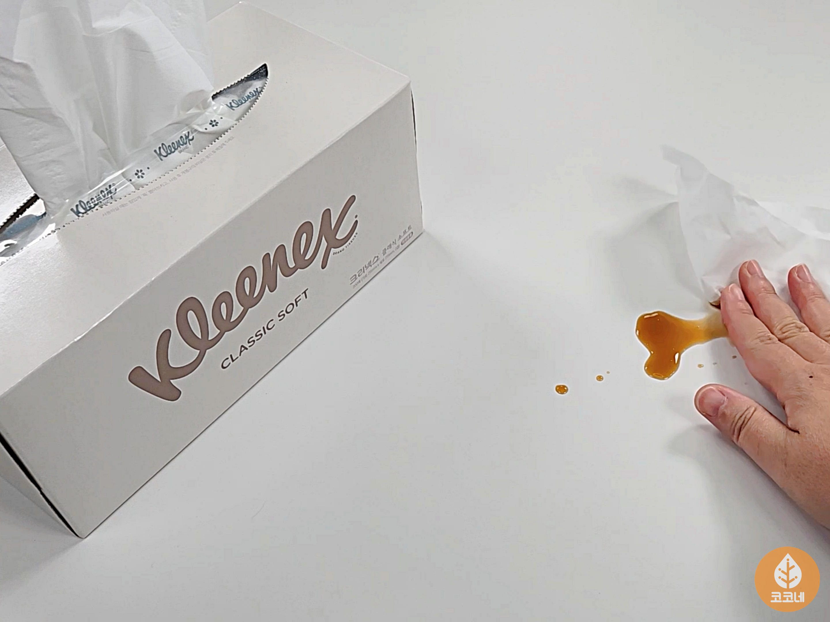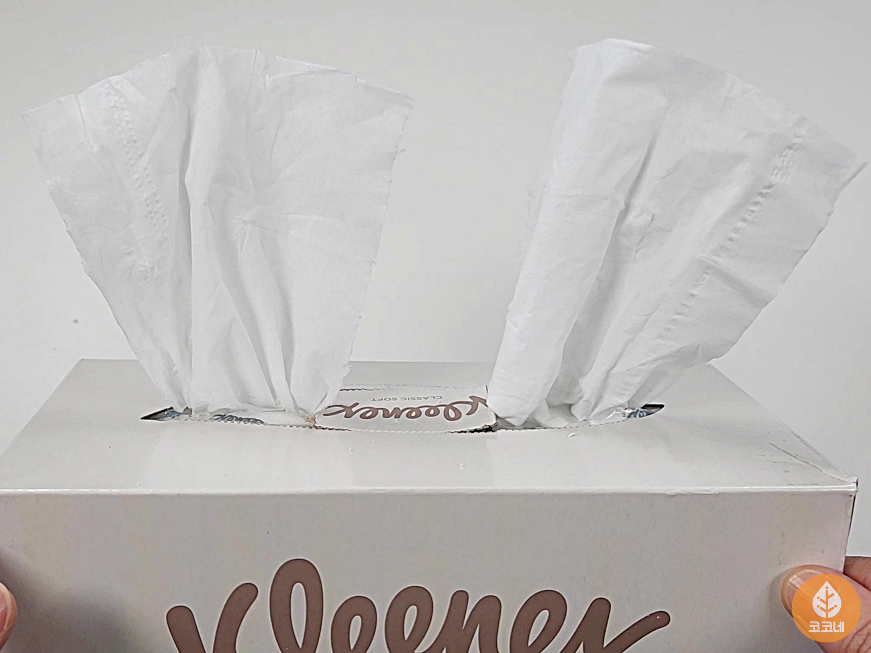 속에 들어있는 티슈를 꺼내서 겹쳐진 상태 그대로