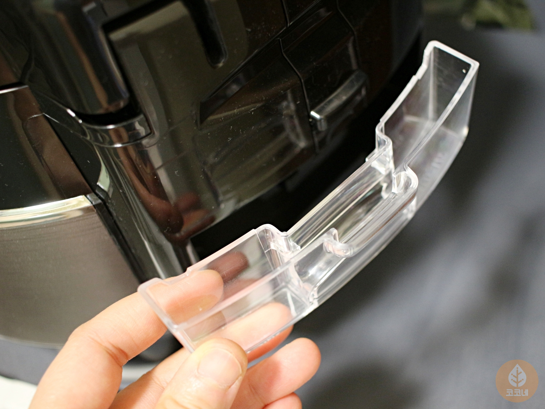 가장 먼저 밥솥 뒷면의 물받이부터 비우고요.