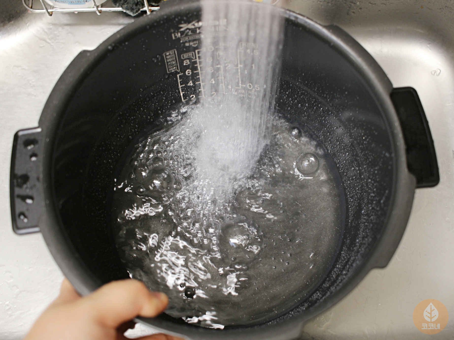 내솥을 빼서 흐르는 물로 헹궈주시고요.