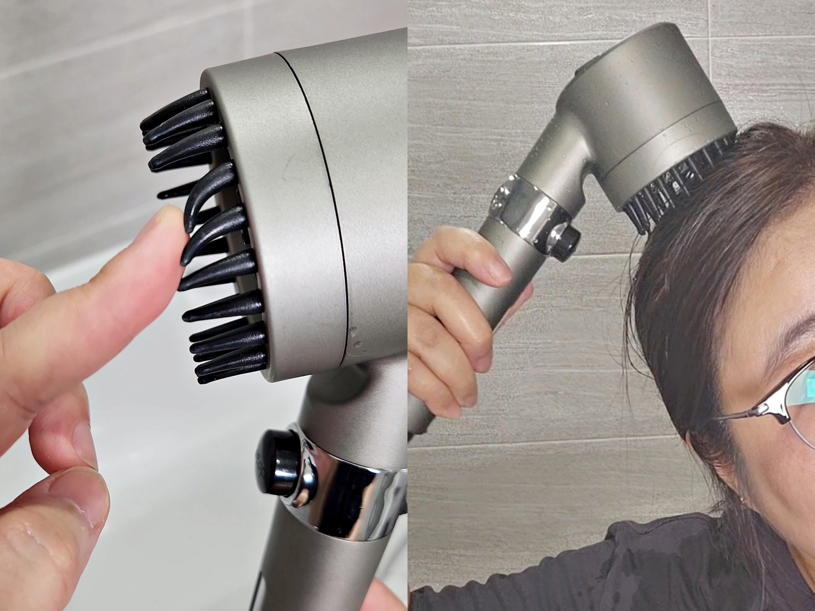 샤워기 헤드 안쪽에는 실리콘 브러쉬가 있어서