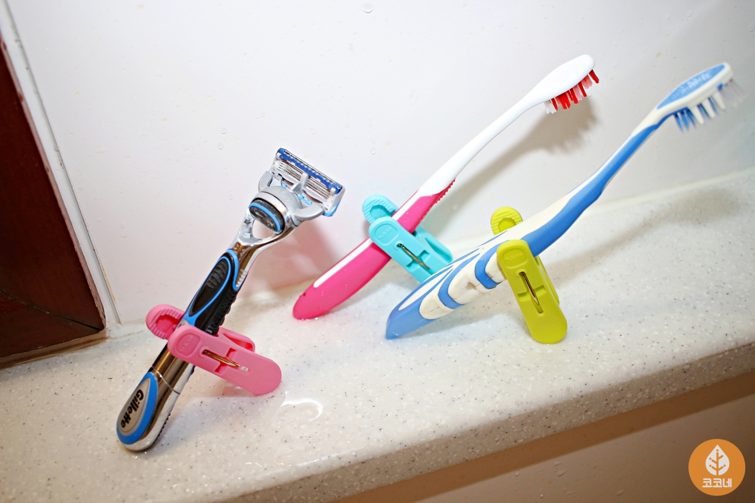칫솔이나 면도기에 빨래집게를 집으면