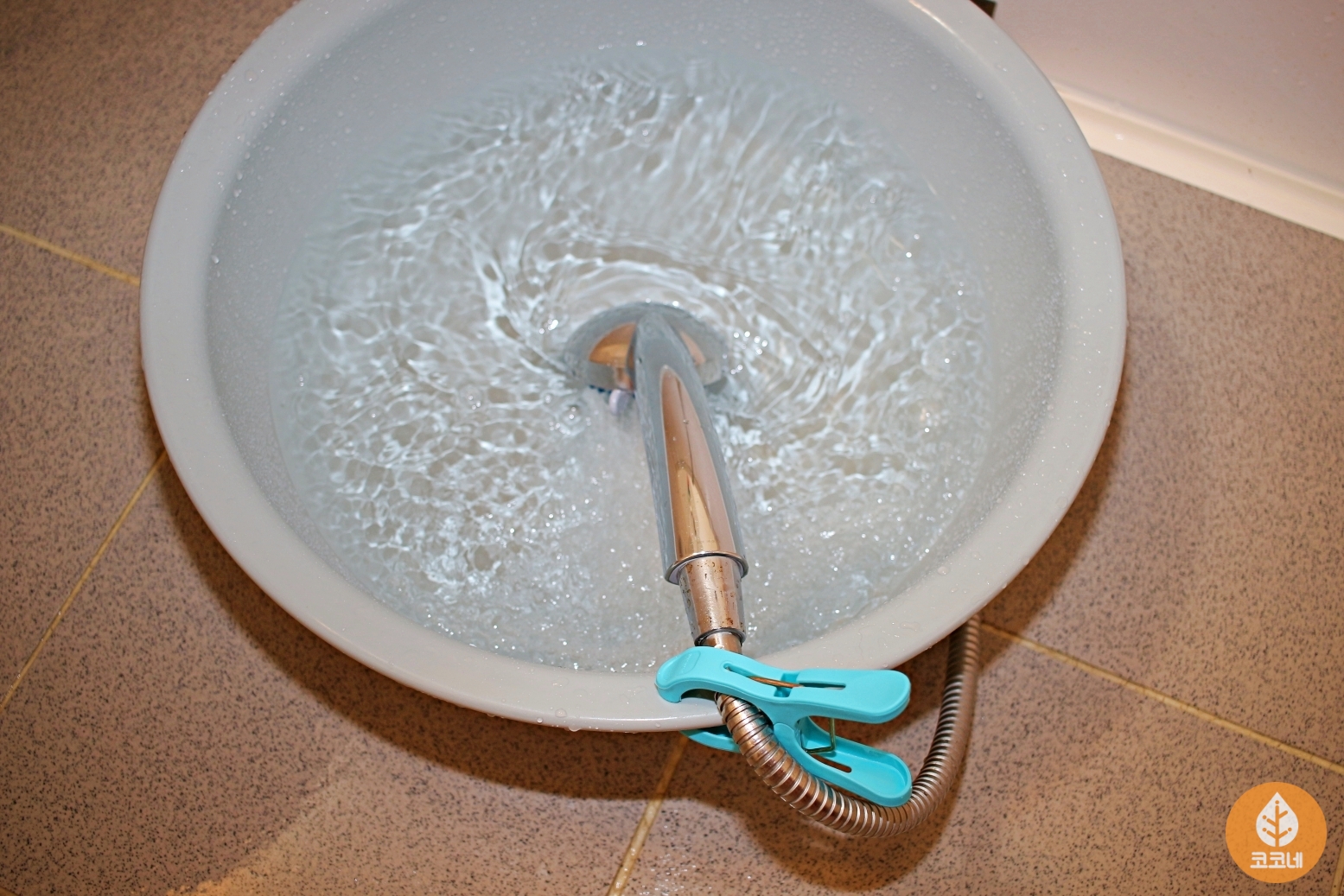 대야에 샤워기를 넣고 물을 받으면