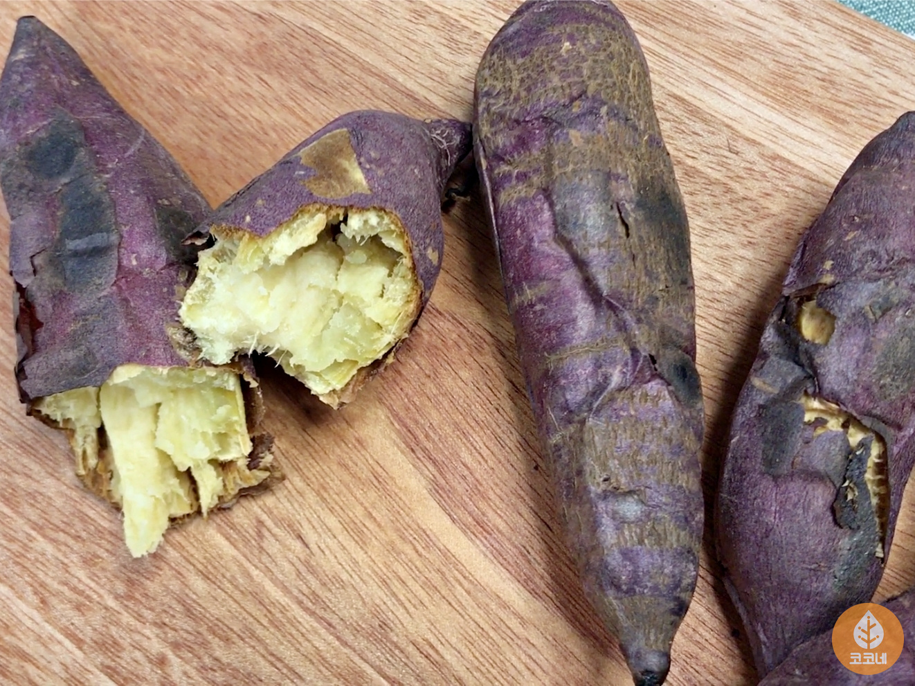 겉이 노릇노릇하게 익어서 군고구마 식감이 살아나요.