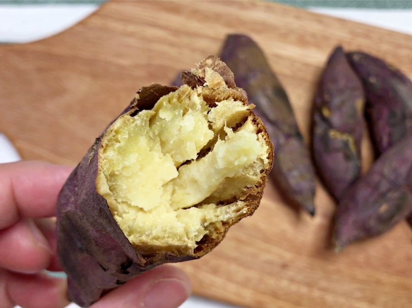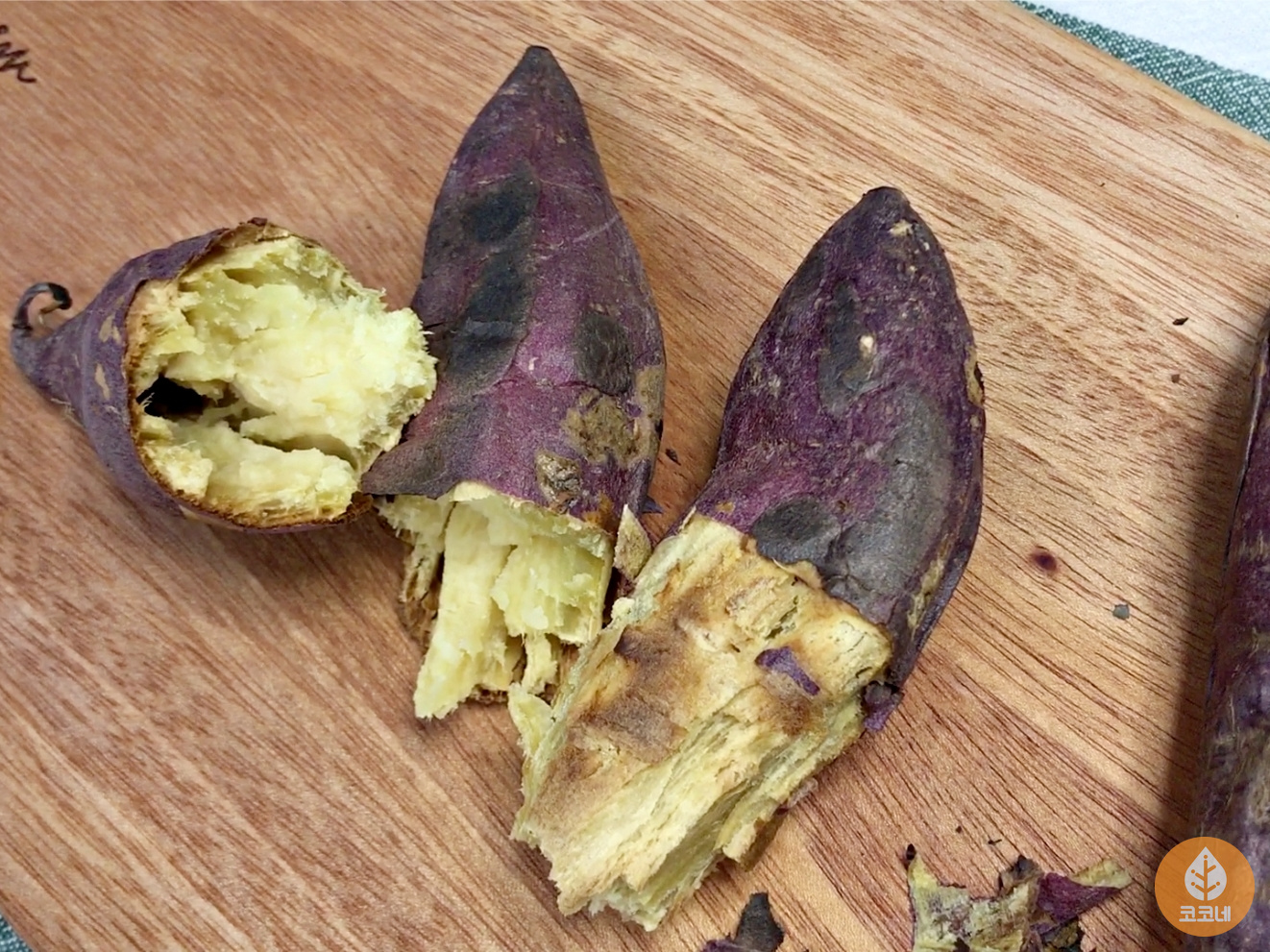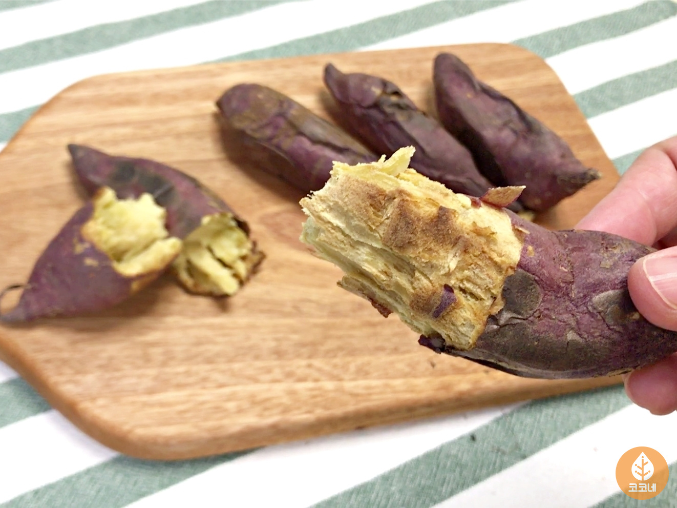 겉이 노릇노릇하게 익어서 군고구마 식감이 살아나요.