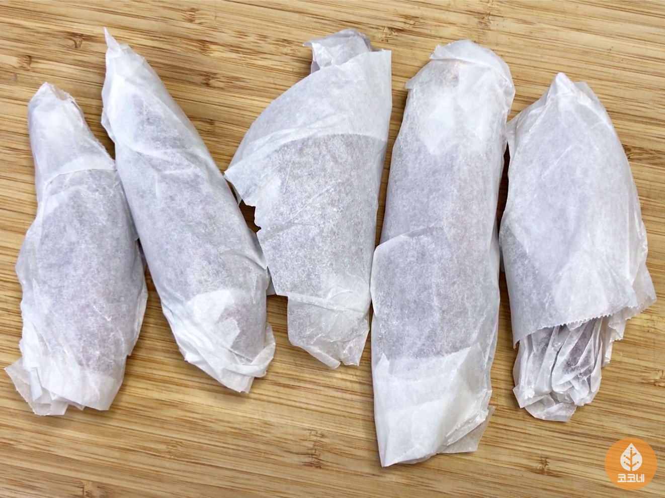 껍질 벗기지 않은 상태로 종이호일로 감싸주세요.