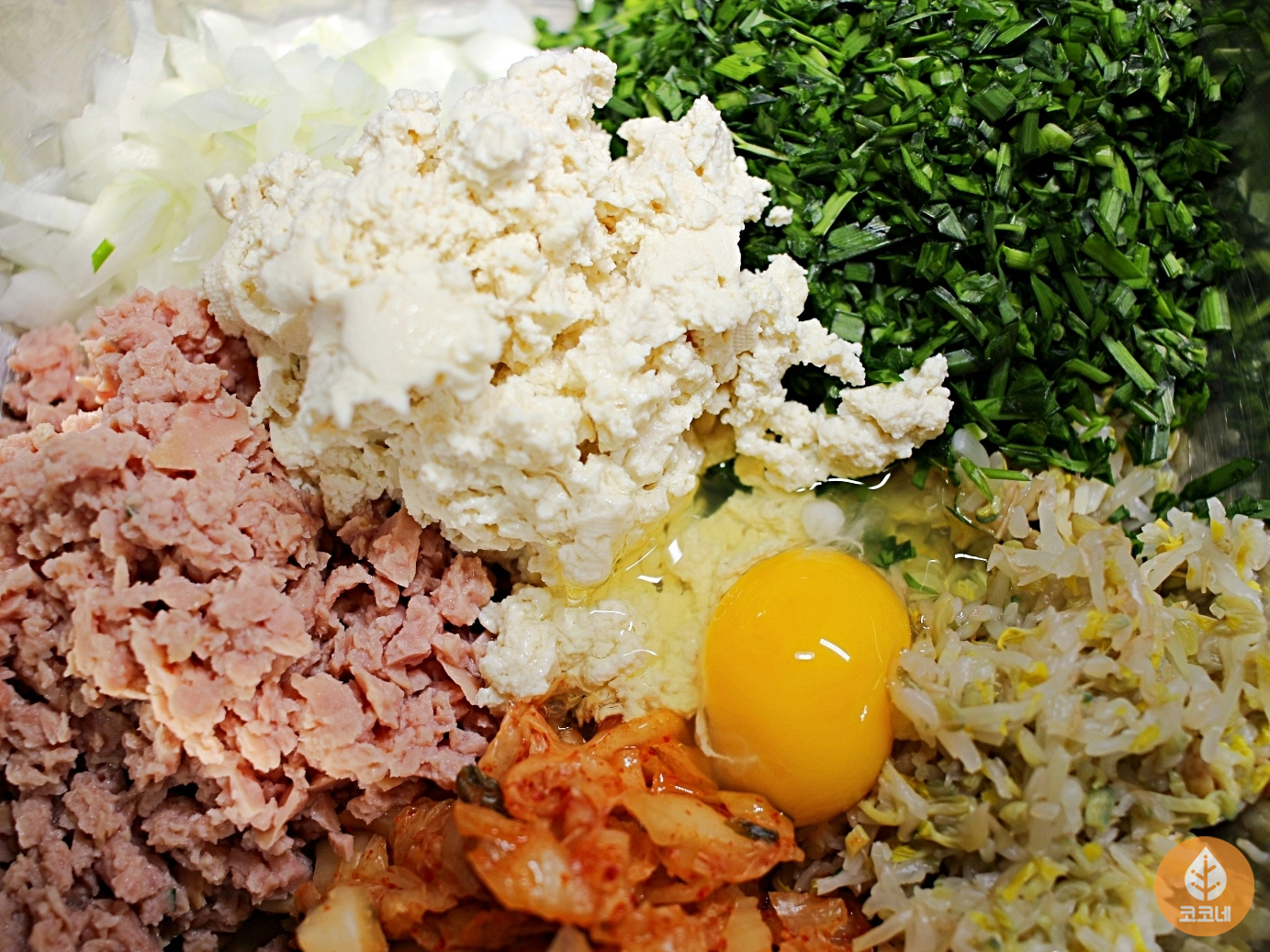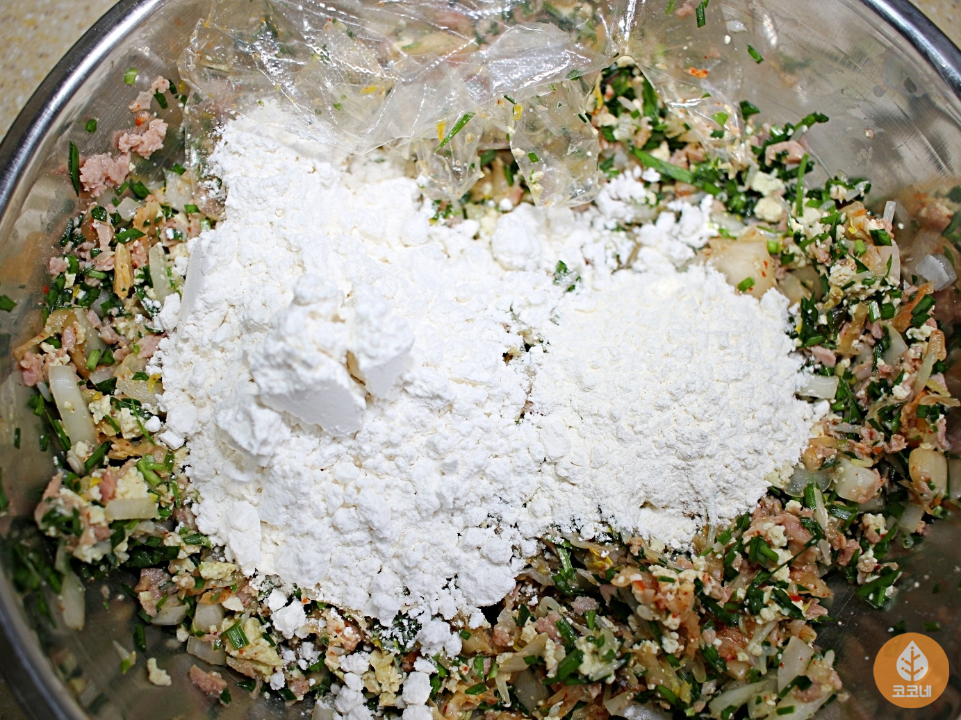 물기를 꼭 짜서 넣어야 반죽이 질척거리지 않아요.