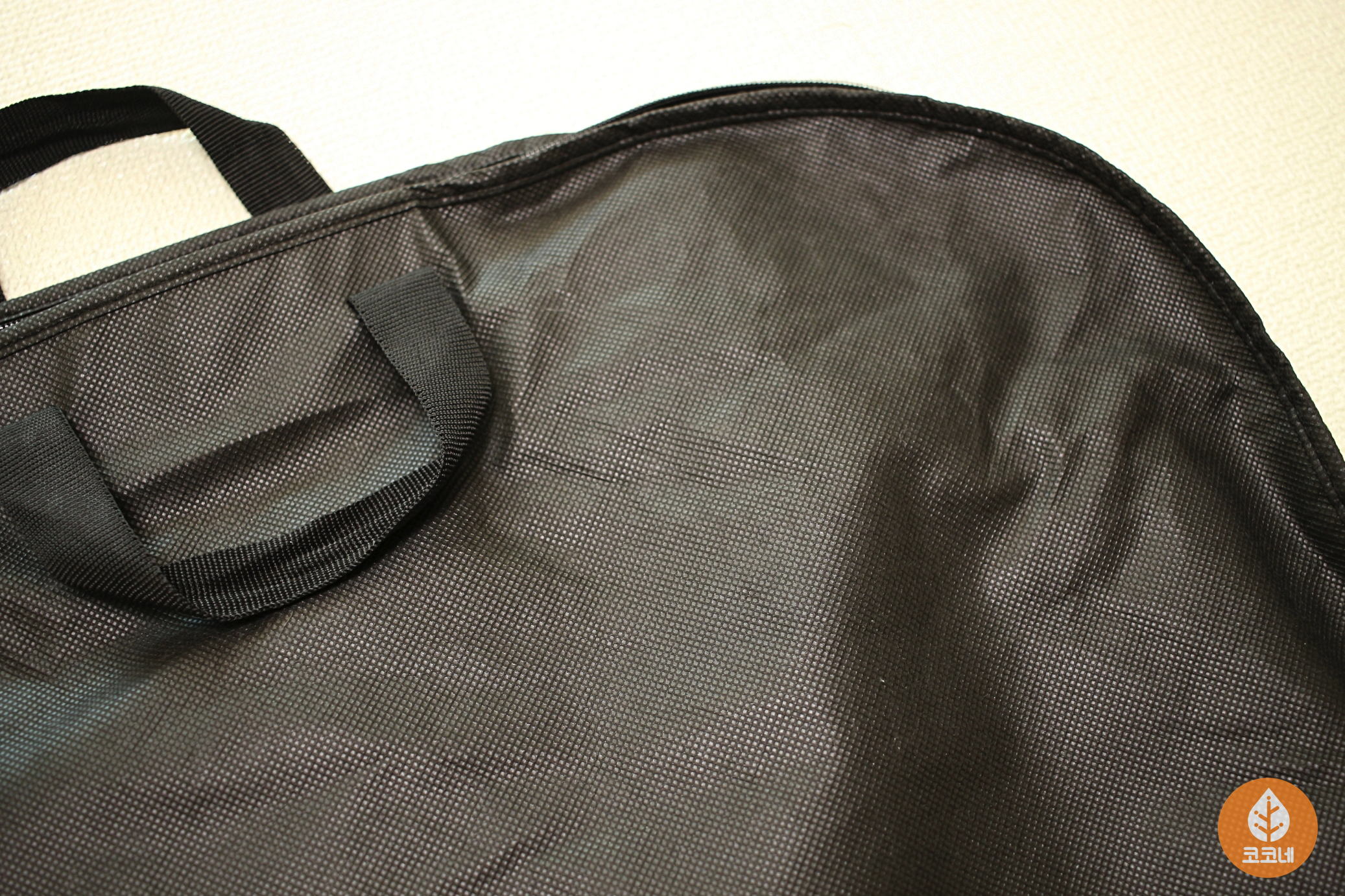부직포커버의 지퍼를 채우고 반으로 접으면