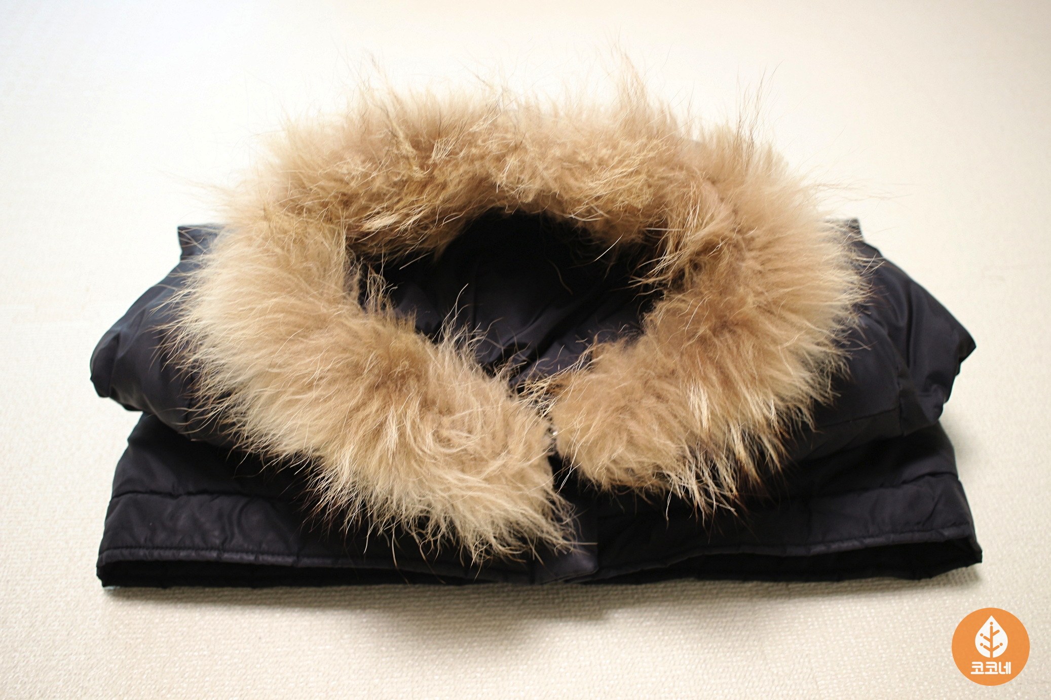 모자에 달린 털은 빗으로 한번 빗어줬어요.