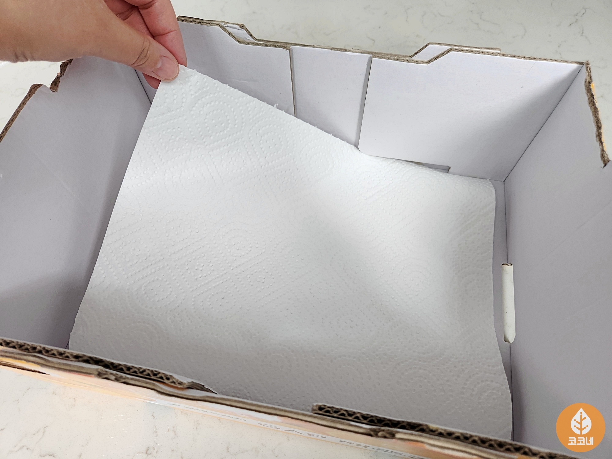 박스에 키친타월 한장 깔아서 습기 예방해 주시고요.