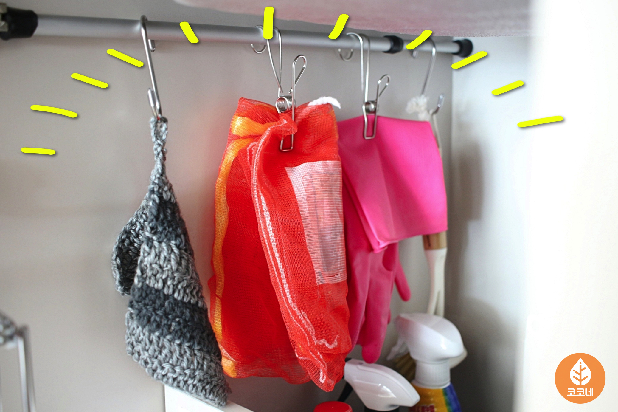 집게나 고리에 걸어서 압축봉에 정리하면